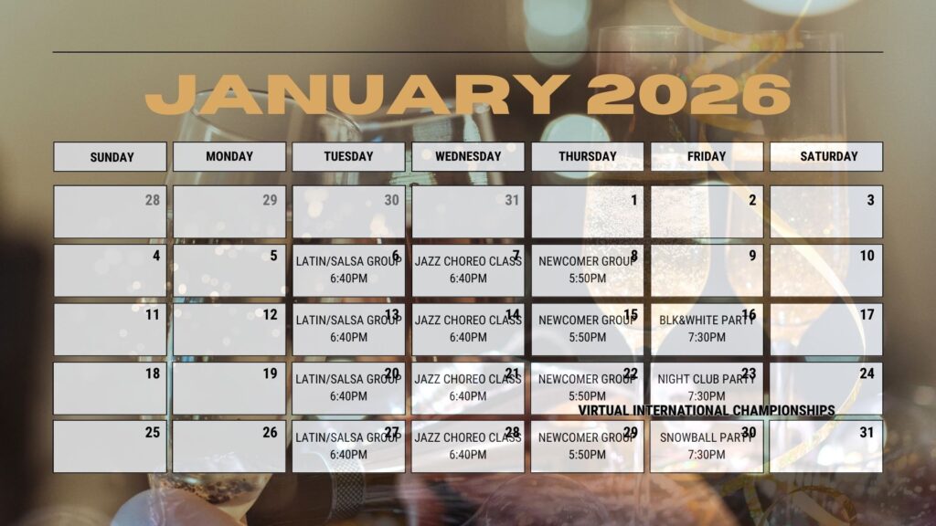 Check out this month’s schedule of Group Classes, Practice Parties and Special Events at our studio. Come with a dance partner or by yourself. For more information and to join us, just give us a call at 920-707-3111 or send us an email [email protected]!