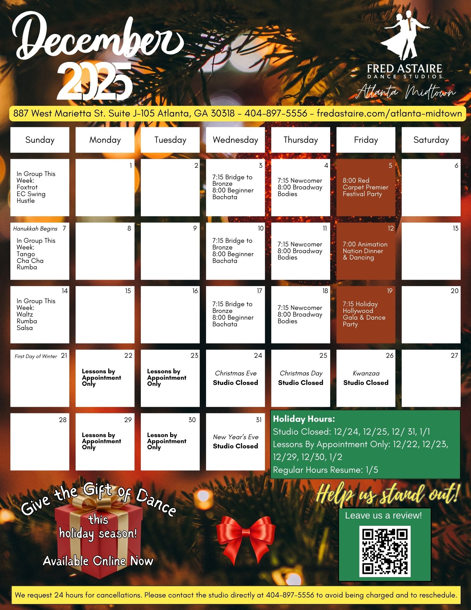 Private lesson ballroom dance classes available by appointment Monday-Friday from 1-9:30 PM.