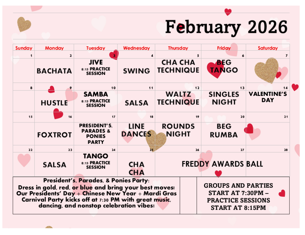 Join us for our group classes at 7:30PM. All classes are $25 per person. All students welcome!!
