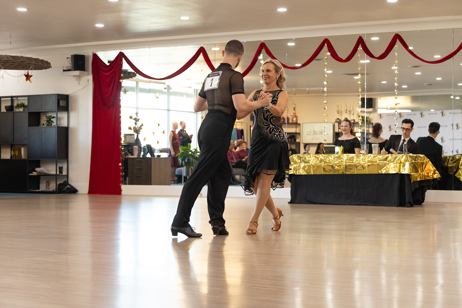 After an introductory lesson — sign up for a $40 intro lesson! — you can join our Beginner Dance Program where you’ll start to learn basic ballroom dance patterns, foot position, directional movements, and more.