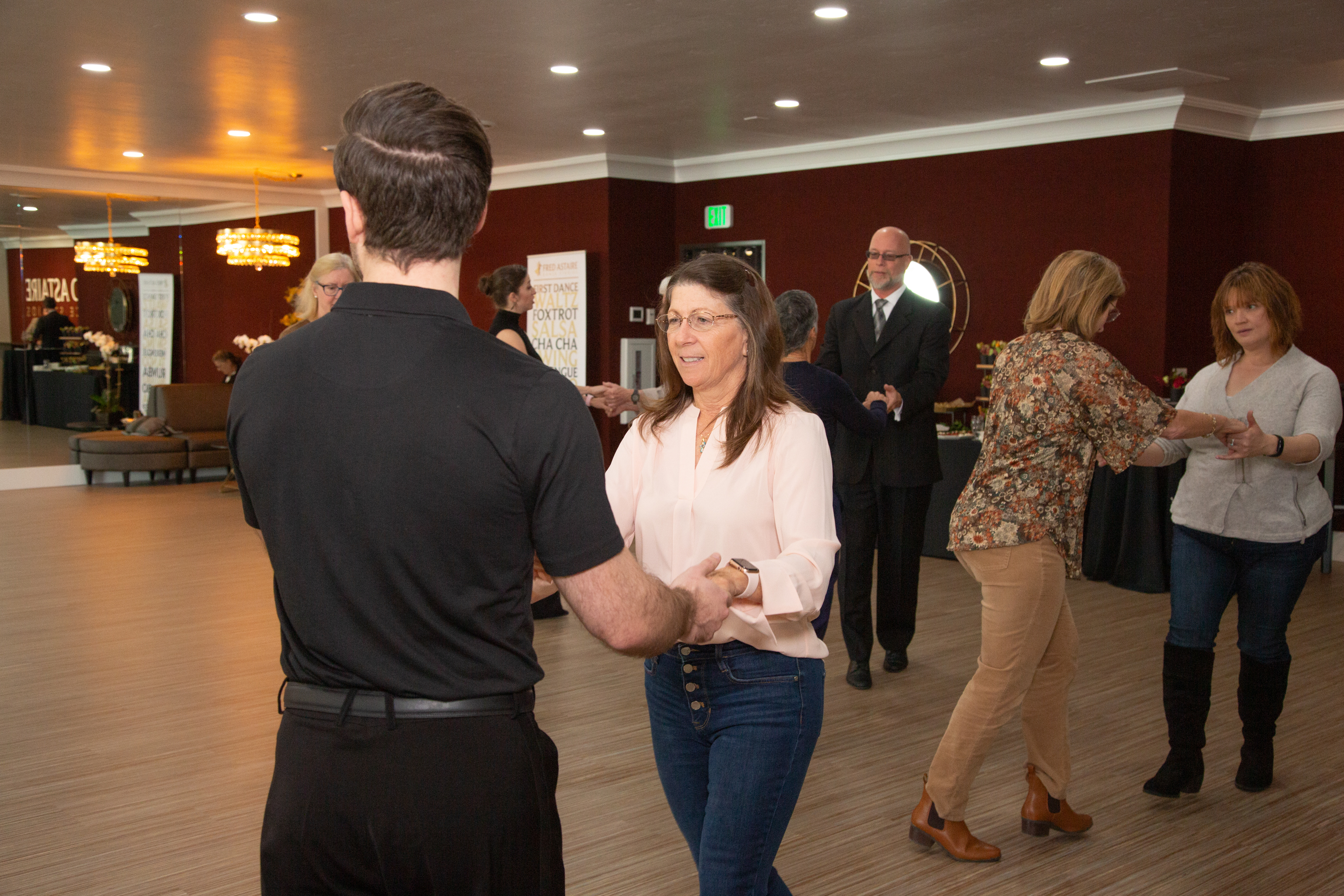 After an introductory lesson — sign up for a $40 intro lesson! — you can join our Beginner Dance Program where you’ll start to learn basic ballroom dance patterns, foot position, directional movements, and more.