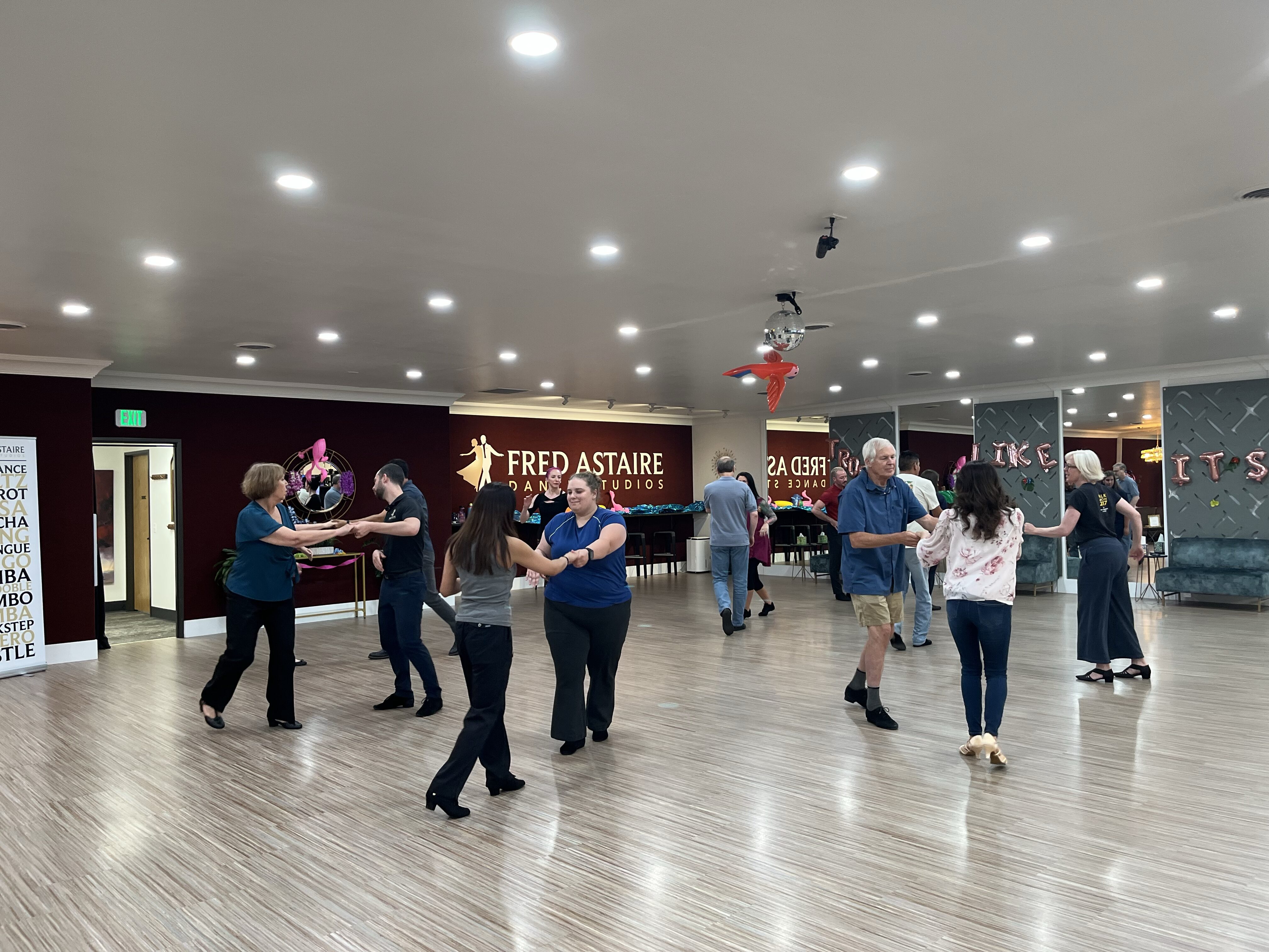 After an introductory lesson — sign up for a $40 intro lesson! — you can join our Beginner Dance Program where you’ll start to learn basic ballroom dance patterns, foot position, directional movements, and more.