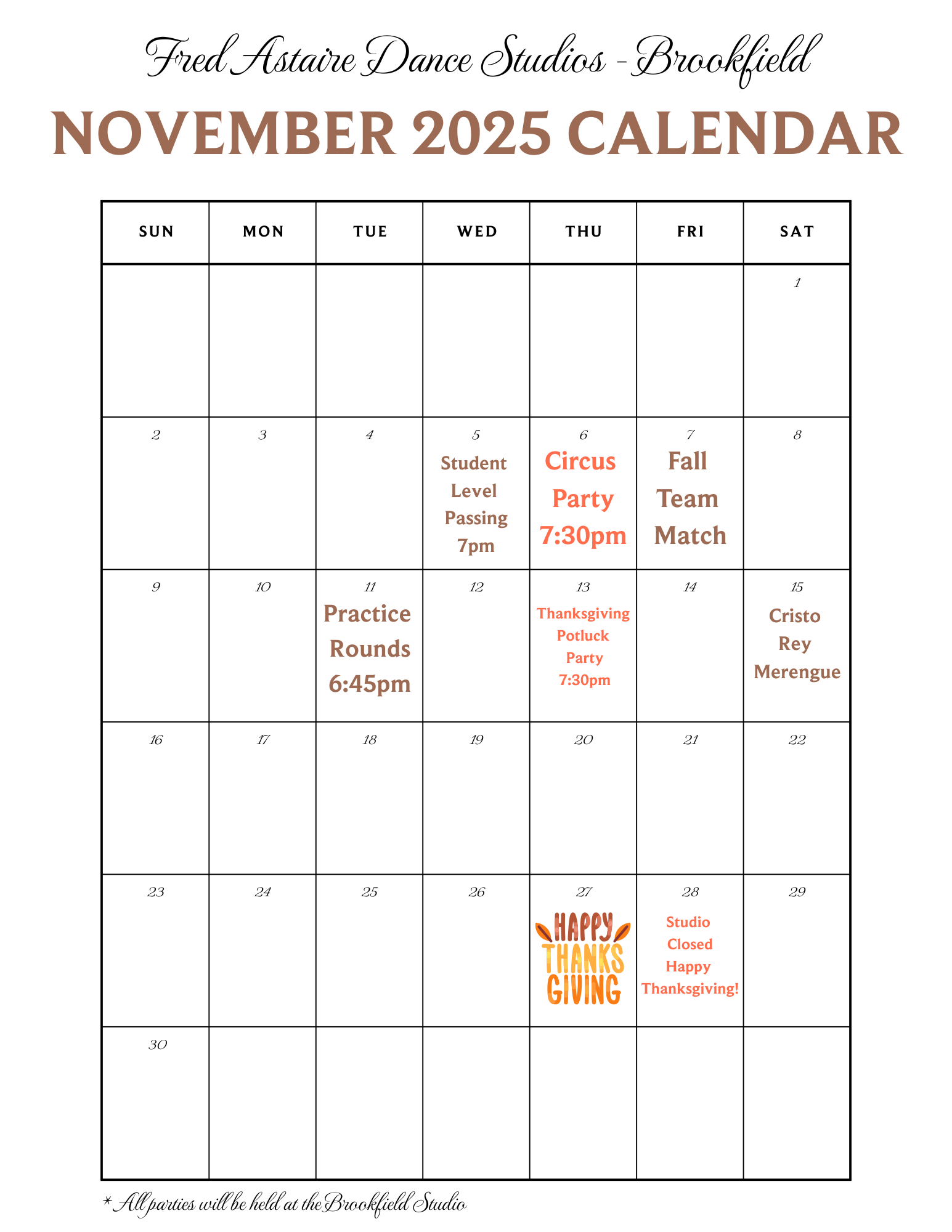 Join the Brookfield Studio students and professionals for an evening of social dancing! These dance parties will have you filling your evenings with movement, your love of dance, and the opportunity to stay connected to your dance family and make new friends.