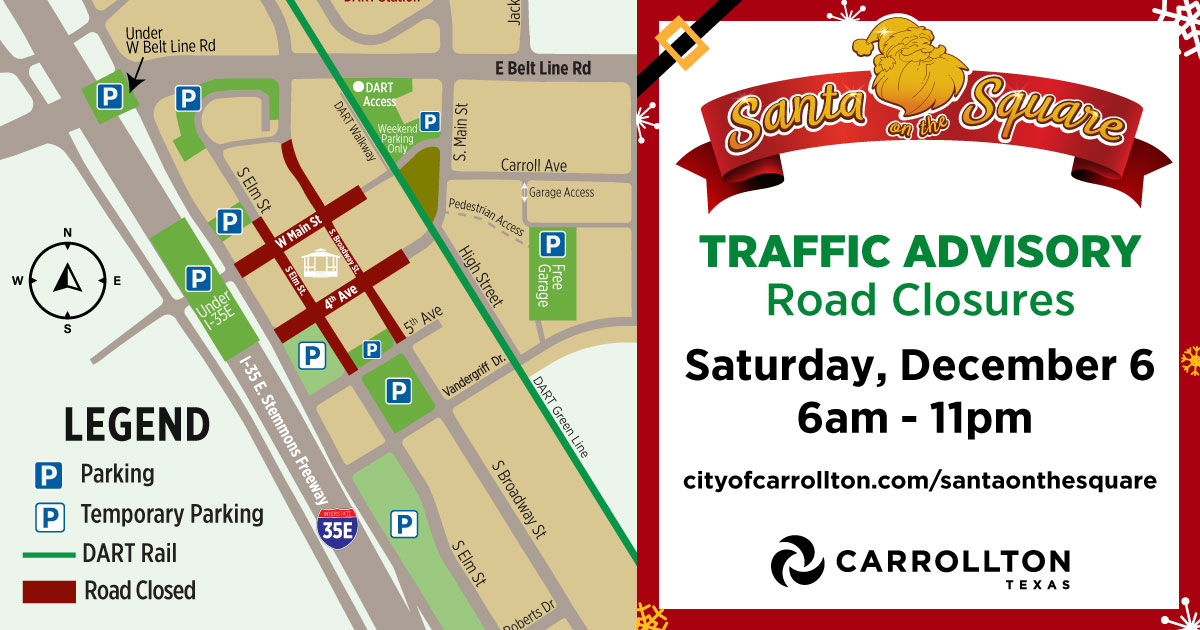 The City of Carrollton’s annual Santa on the Square celebration is almost here, and the holiday magic is in full swing! Enjoy artisan vendors, photos with Santa, trackless train rides, live performances, and so much more—plus the Tree Lighting Ceremony and a spectacular Drone Show at 6 p.m. ✨