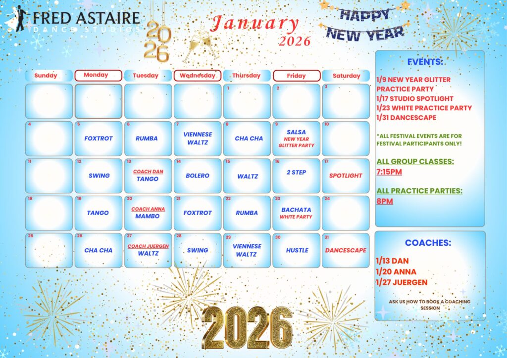 Take a look at some of the exciting upcoming parties and group classes that you won’t want to miss! Remember, these events are only for enrolled students, so if you’re not a member yet, now’s the perfect time to join and see what all the fun is about!