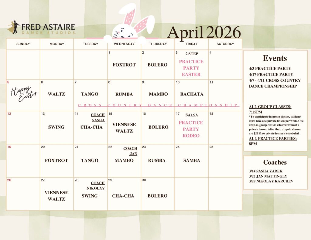 Take a look at some of the exciting upcoming parties and group classes that you won’t want to miss! Remember, these events are only for enrolled students, so if you’re not a member yet, now’s the perfect time to join and see what all the fun is about!