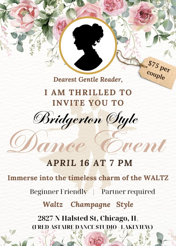 🕺A Bridgerton Style Dance Event, promising waltzes, whispers, and wonder, shall take place on the the sixteenth of April at the stroke of 7 in the evening.