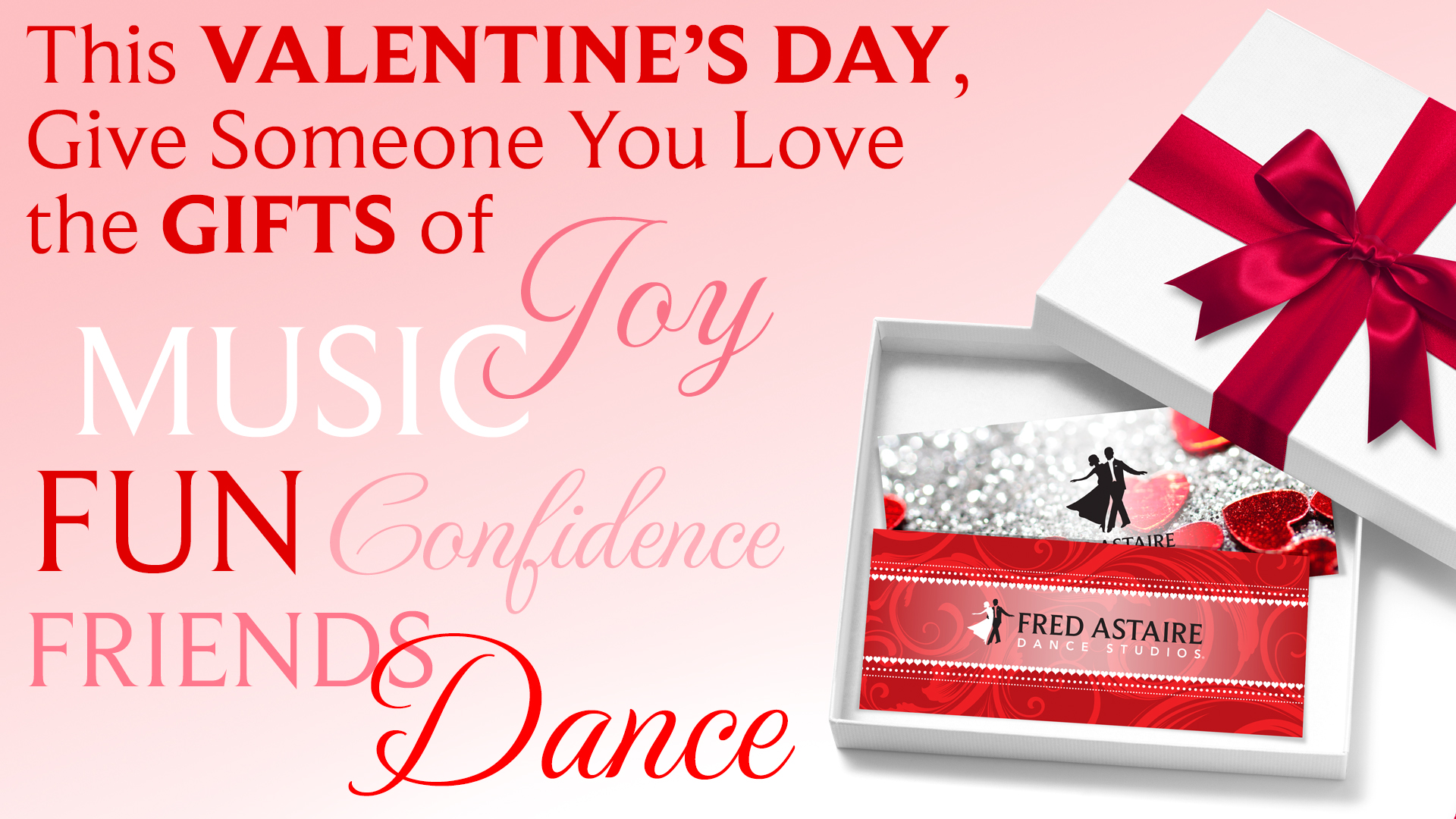 No matter the occasion, we have the perfect gift: the gift of dance! A gift card from Fred Astaire is the perfect gift for the person in your life looking to try something new, expand their artistic boundaries, or who just might need a nudge towards the perfect date night! Choose your Gift Card below: