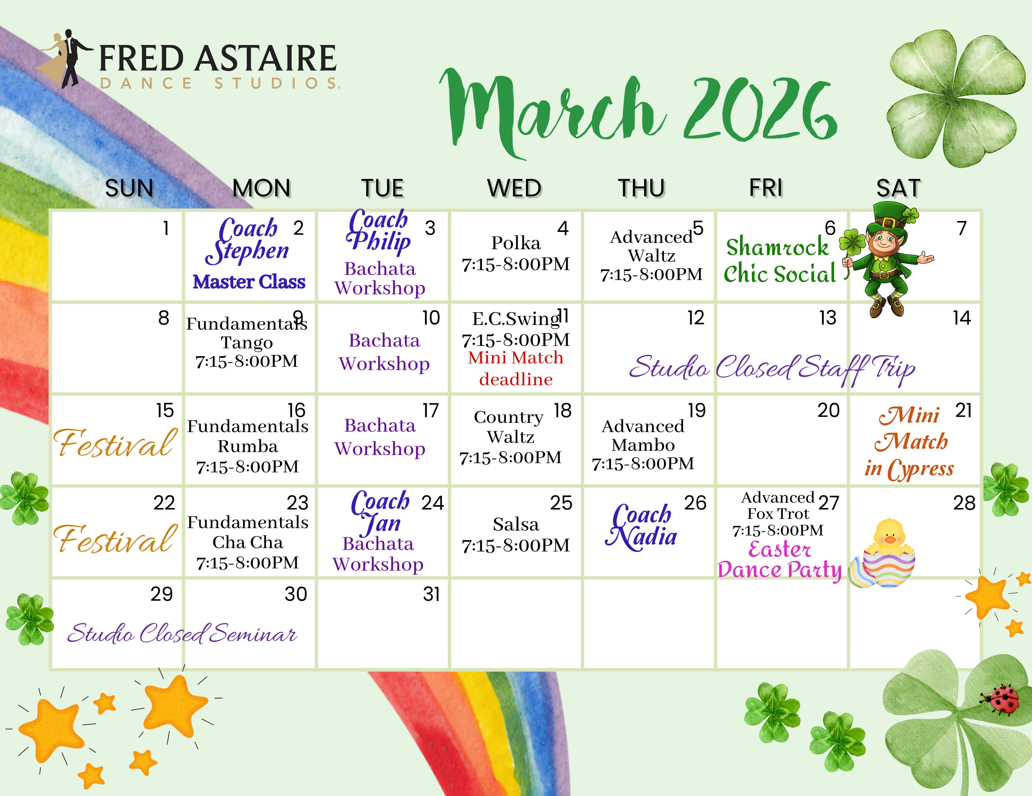 Stay tuned for some of the exciting upcoming parties you won’t want to miss! Remember, these events are only for enrolled students, so if you’re not a member yet, now’s the perfect time to join and see what all the fun is about!