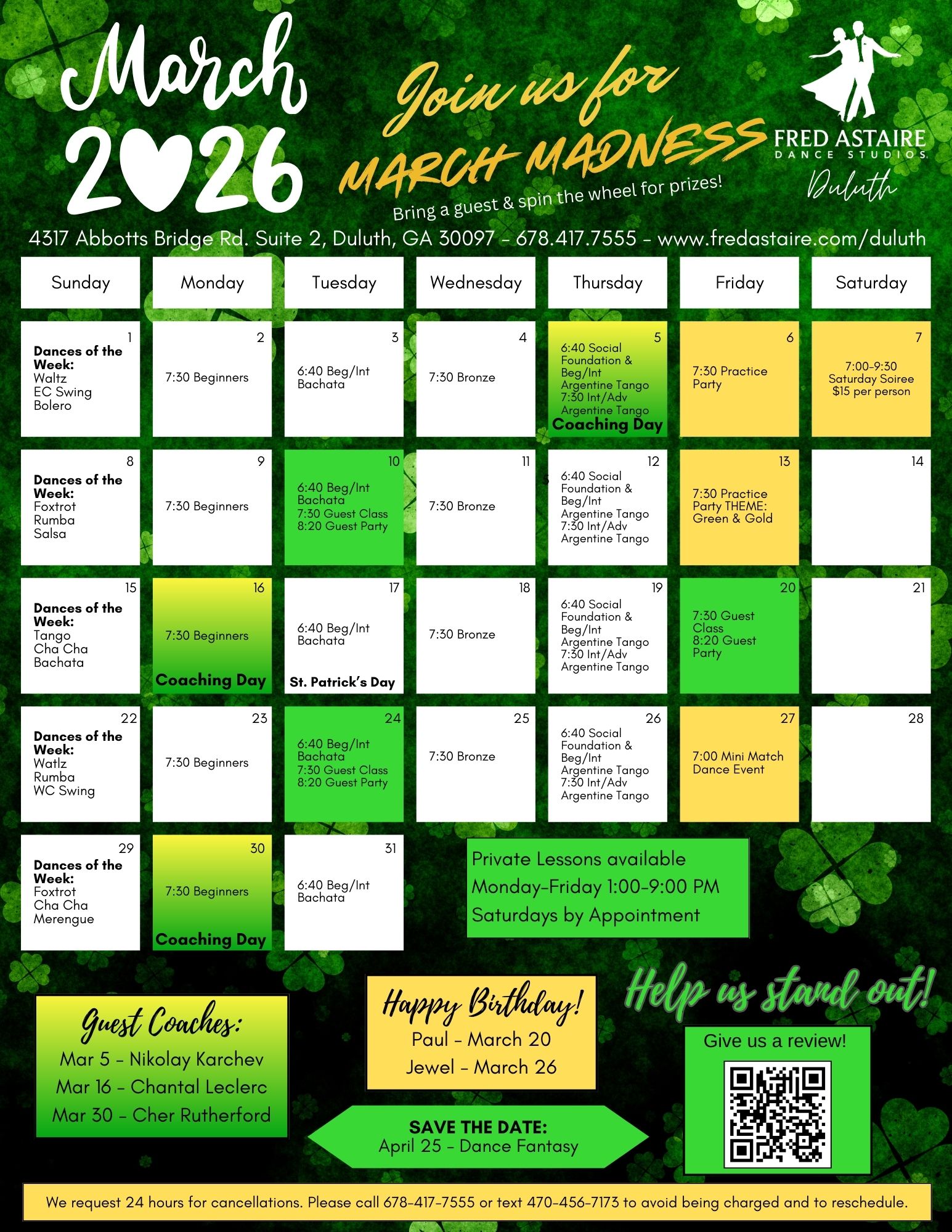To schedule, cancel, or reschedule a lesson or to make a reservation for a group class & party CALL 678-417-7555 or TEXT 470-456-7173.