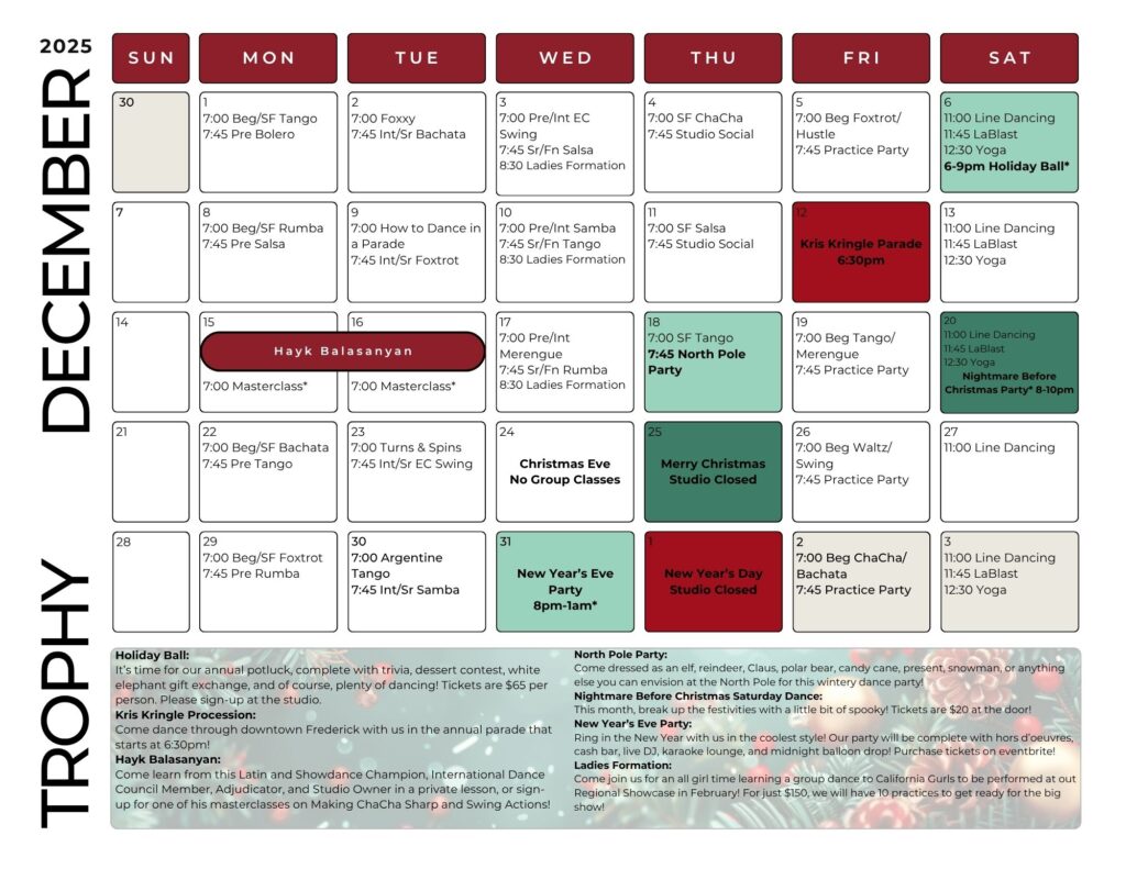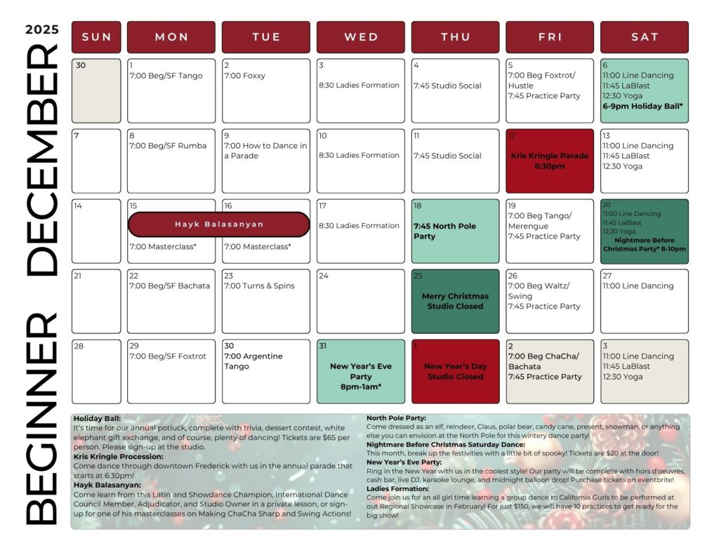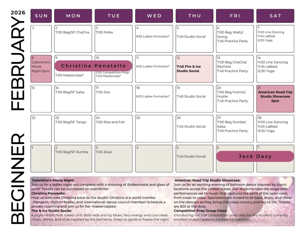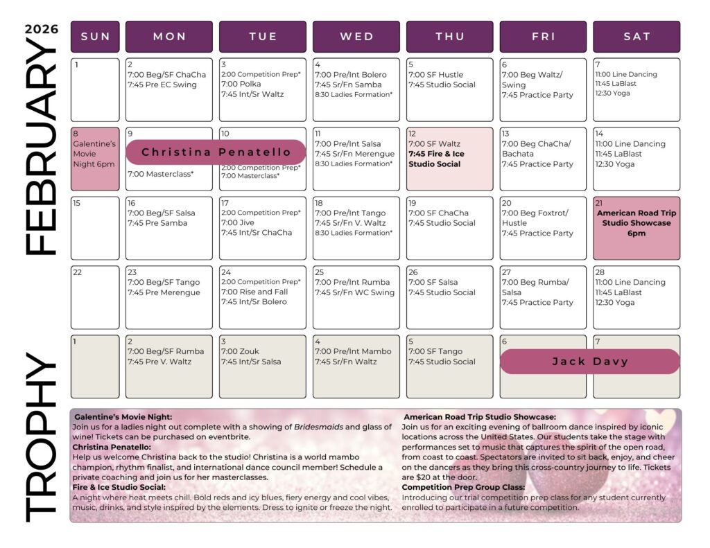 PLEASE NOTE: Our calendar of events is subject to change. Be sure to contact our studio for questions and more information.