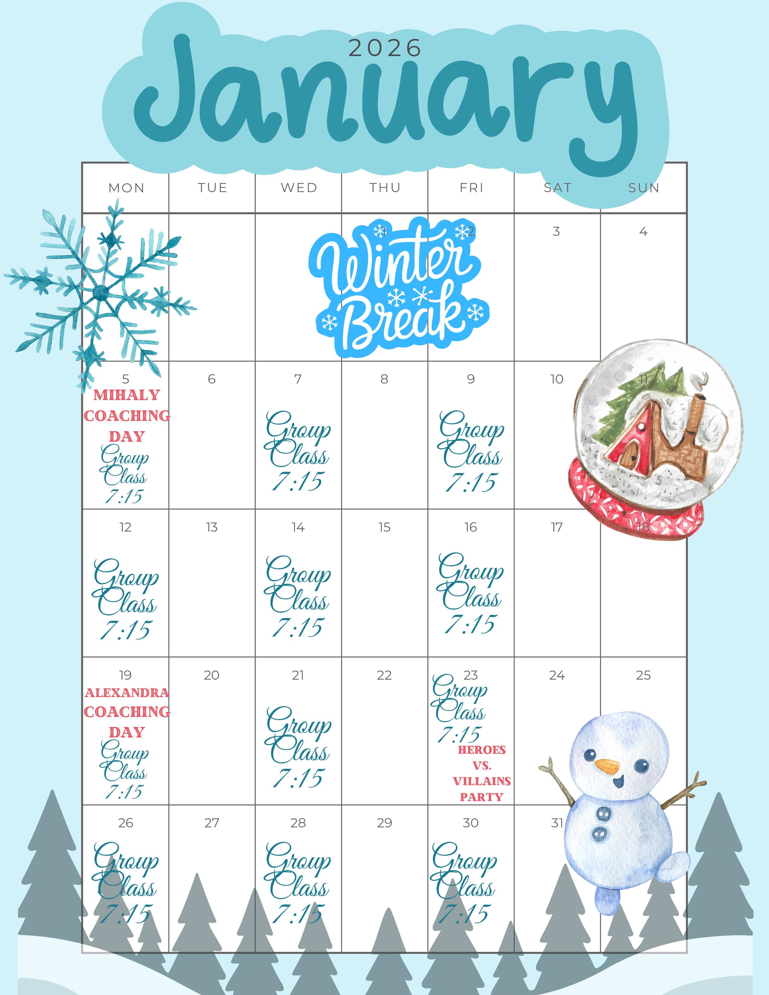 PLEASE NOTE: Our calendar of events is subject to change. Be sure to contact our studio for questions and more information.
