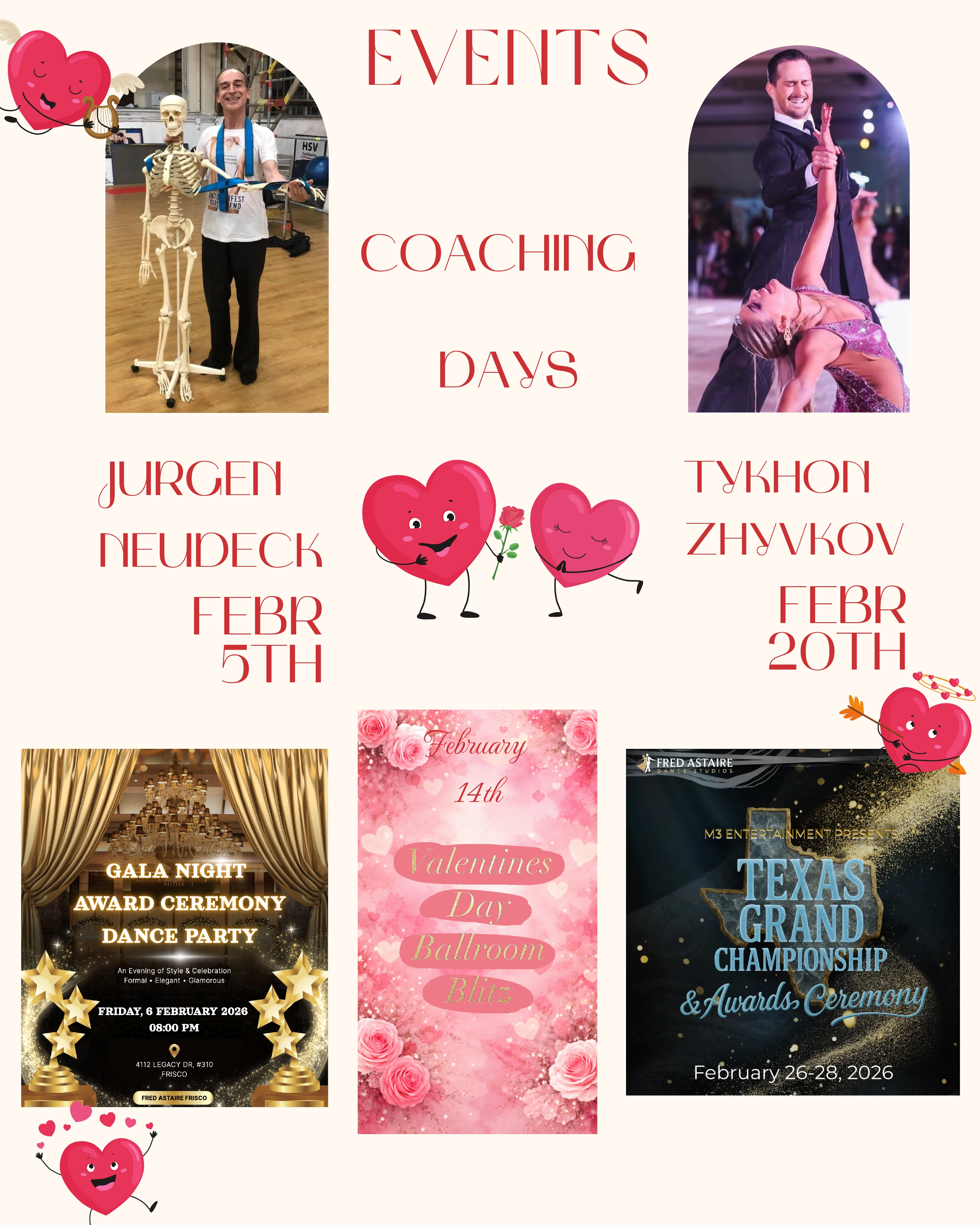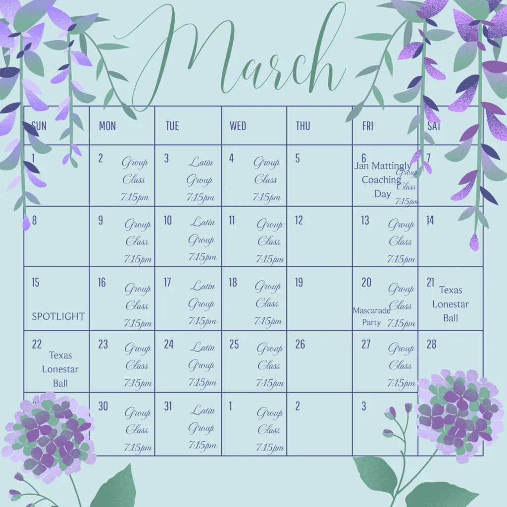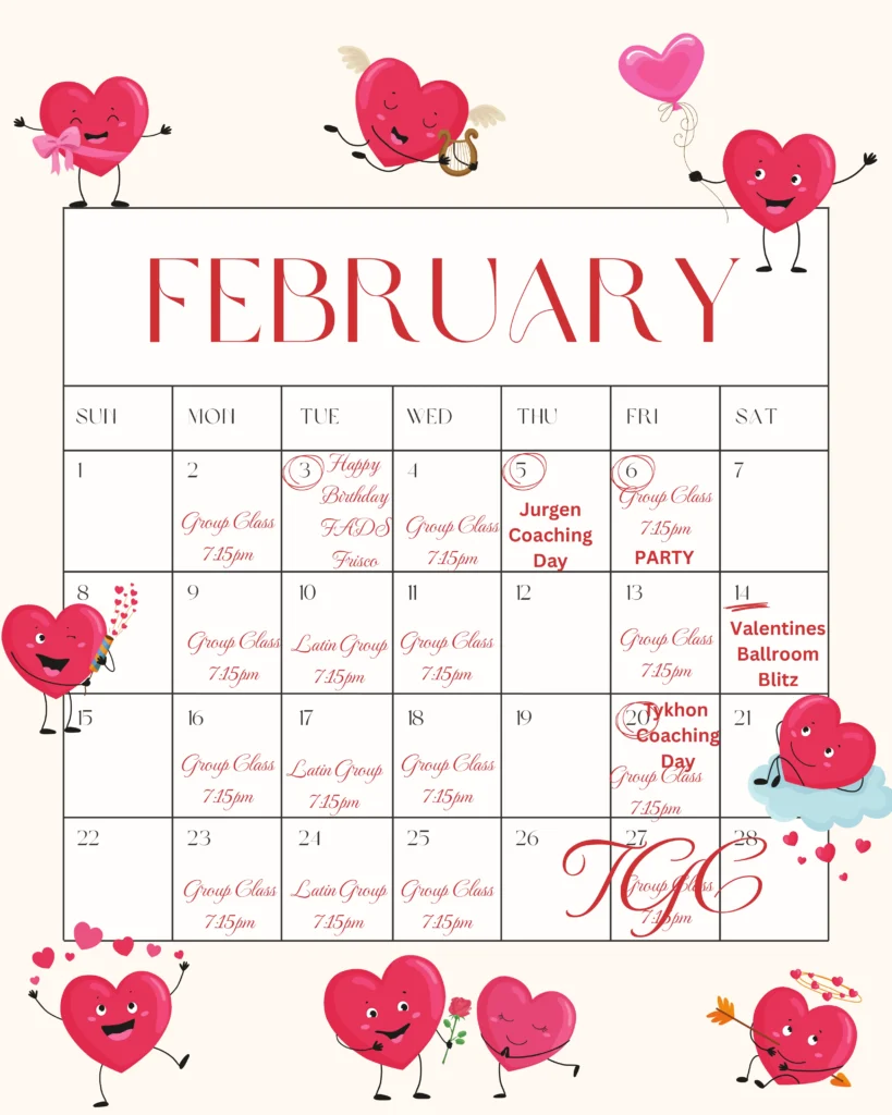 Below you will find our monthly calendar of events for Fred Astaire Dance Studio of Frisco, including group classes, practice parties, and special events!