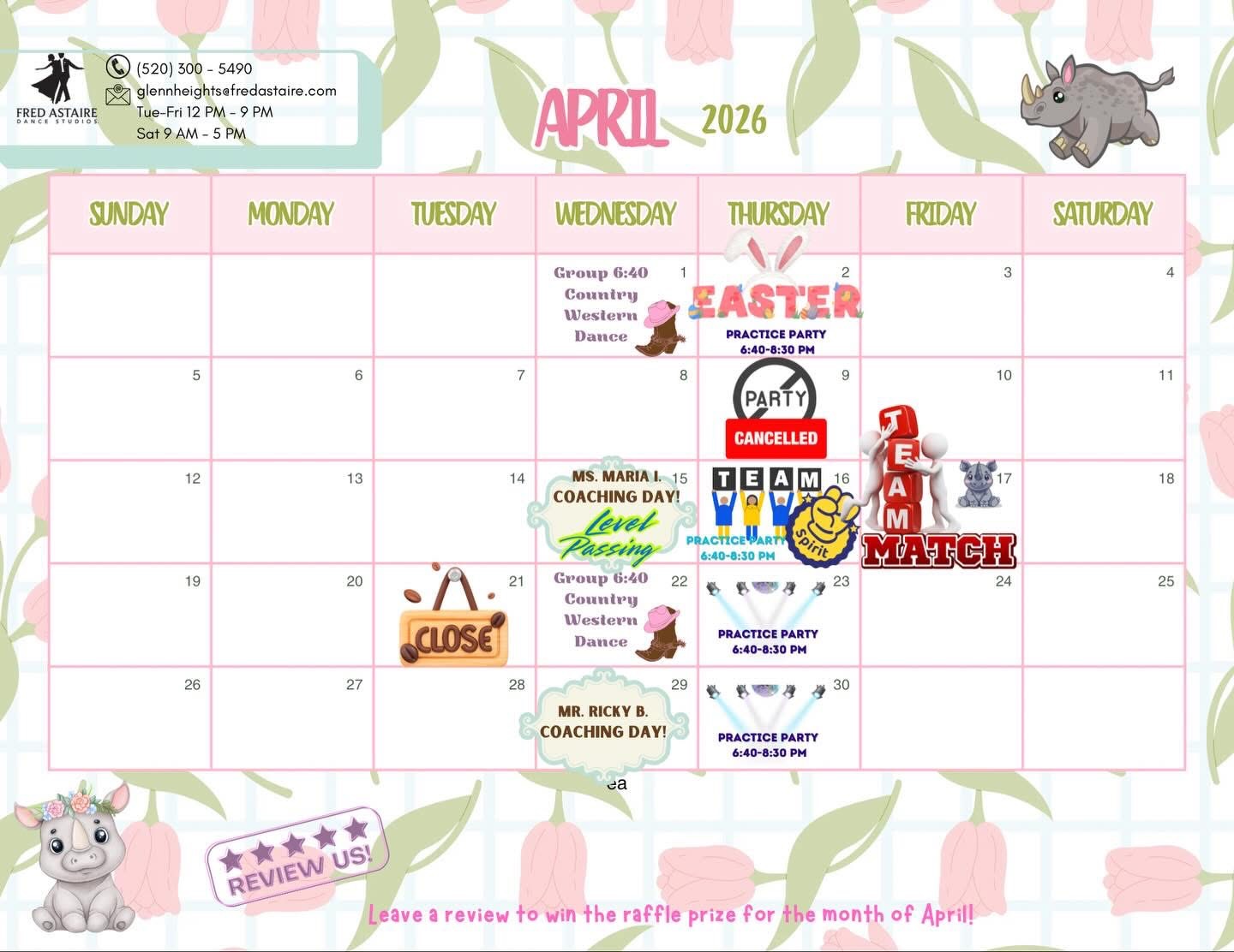 Our Glenn Heights dance studio offers private and group dance lessons, classes, studio practice parties, and much more! Check out this month’s calendar below and make sure to pick up a copy in the studio!