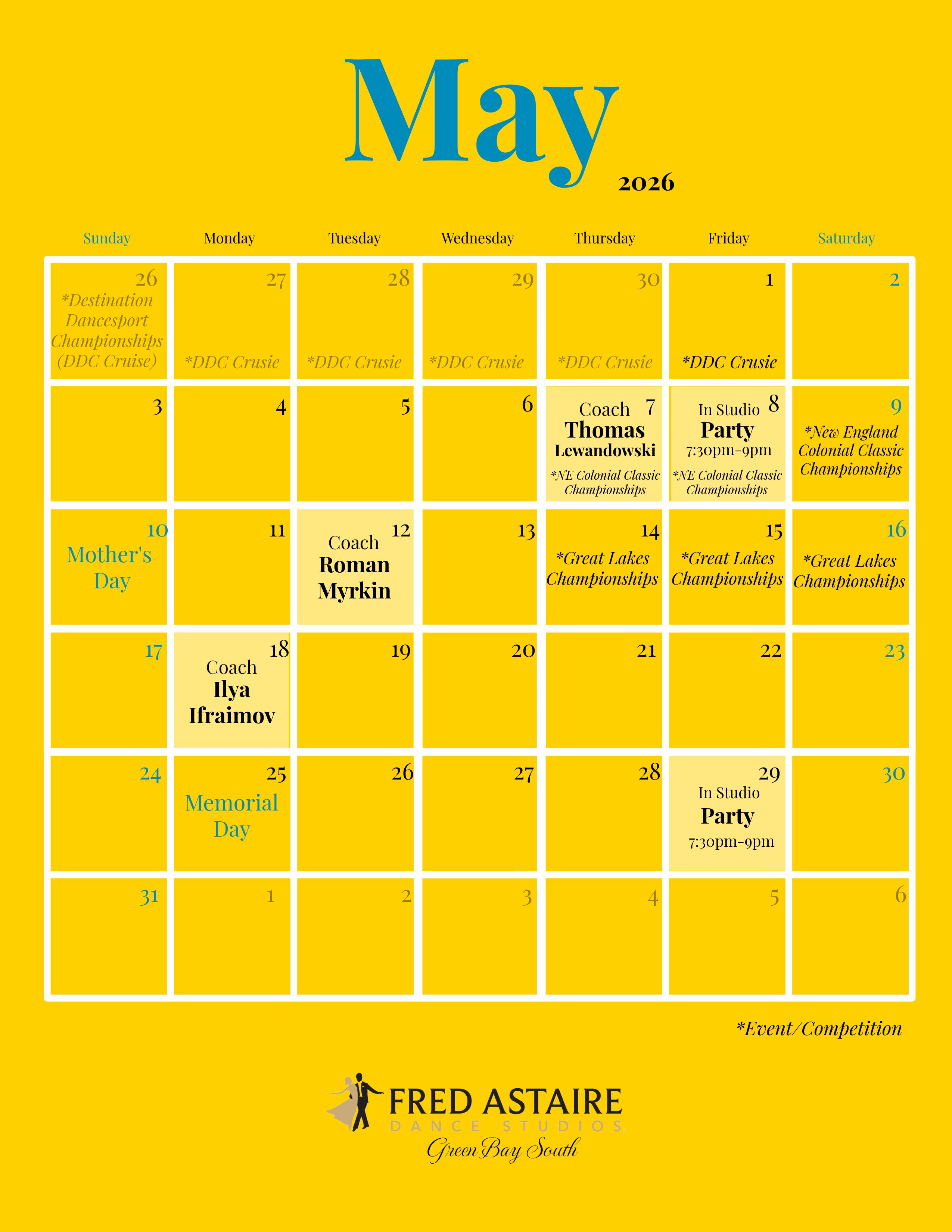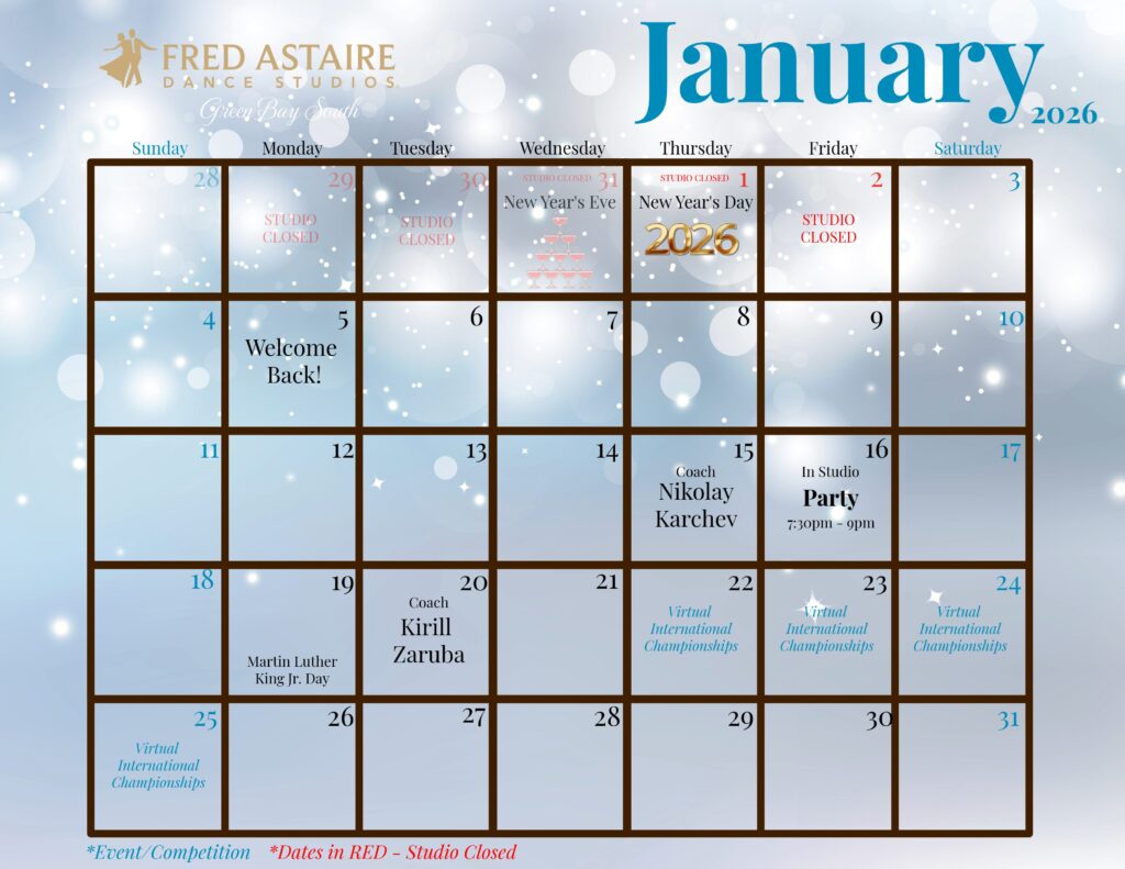 PLEASE NOTE: Our calendar is subject to change. Be sure to contact our studio with questions and for more information.