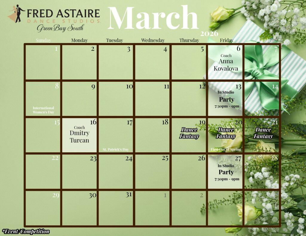 Check out this month’s schedule of Group Classes, Practice Parties and Special Events at our Studio. Come with a dance partner or by yourself. For more information and to join us, just give us a call!