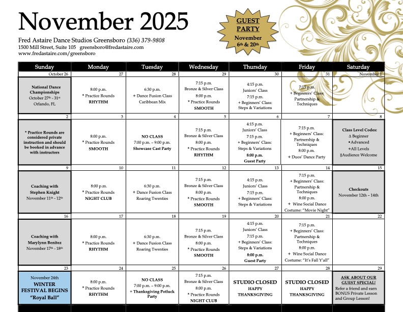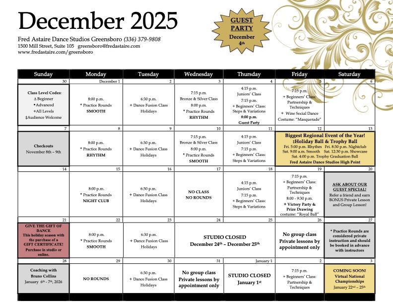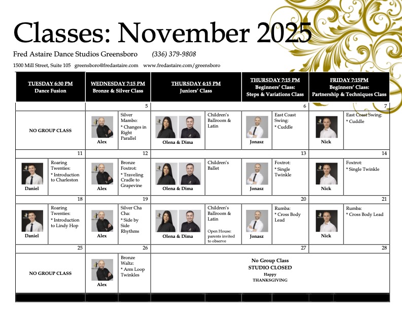 Step into a world of dance with the Fred Astaire Dance Studios Greensboro Group Class Calendar!