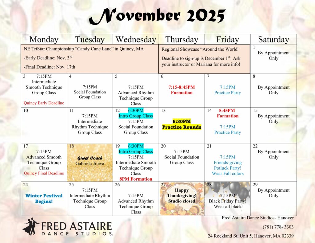 PLEASE NOTE: Our calendar of events is subject to change. Be sure to contact our studio for questions and more information.