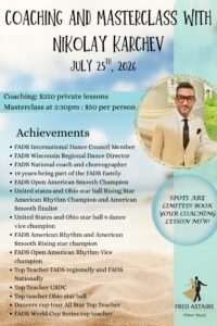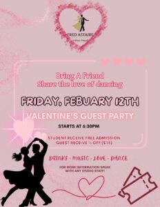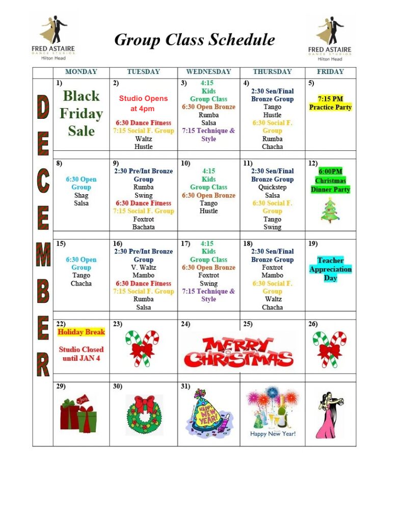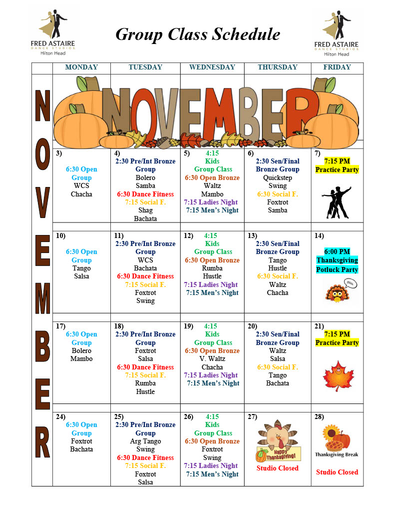 Check out this month’s schedule of Group Classes, Practice Parties and Special Events at our Studio. Come with a dance partner or by yourself. For more information and to join us, just give us a call!