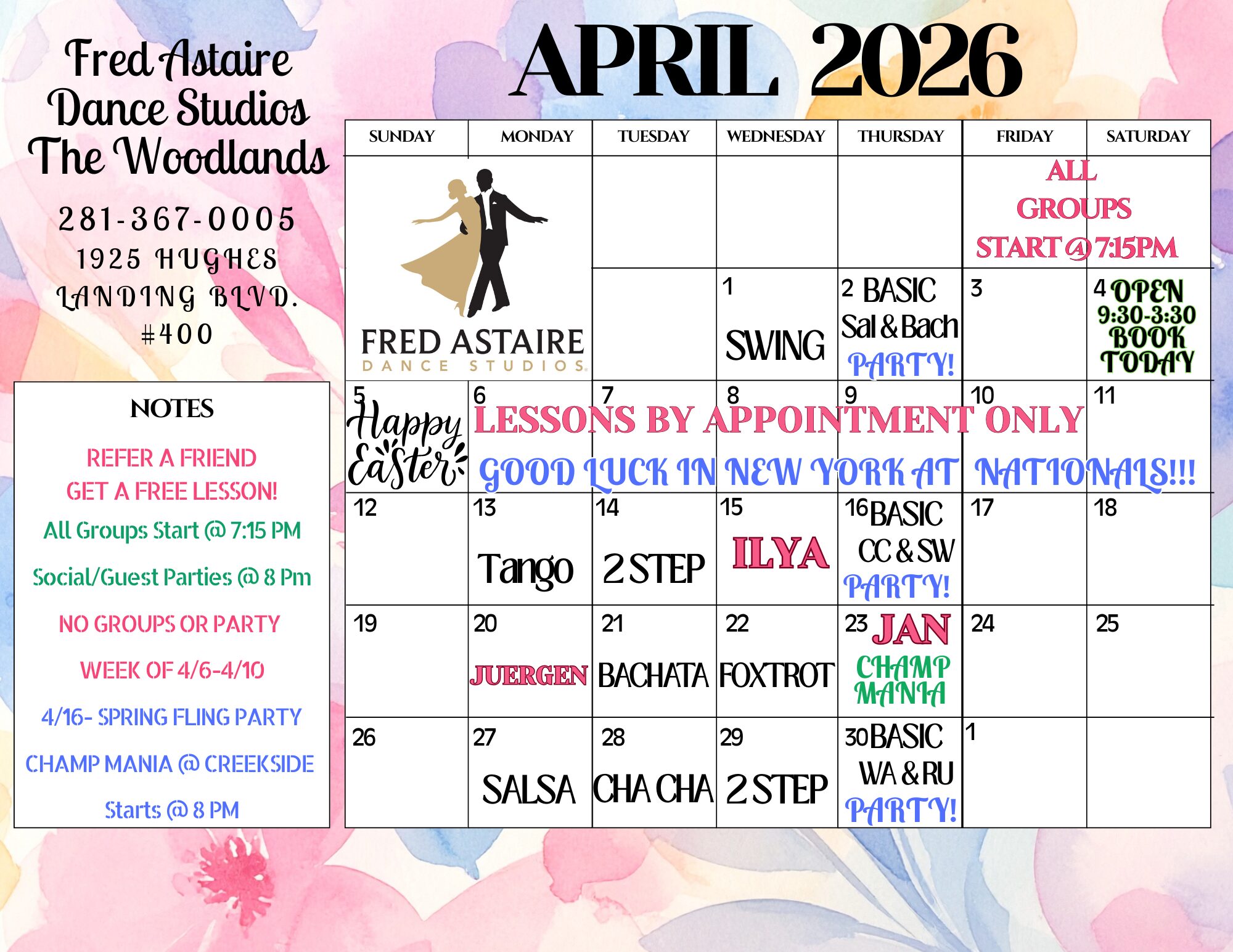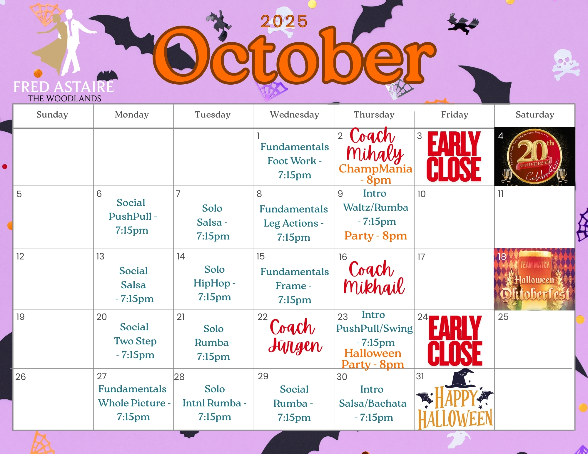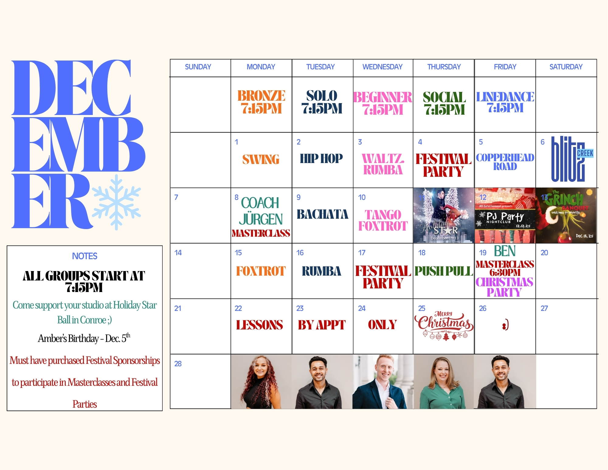 See below our Calendars with Group Classes, Practice Parties, and Special Events!!