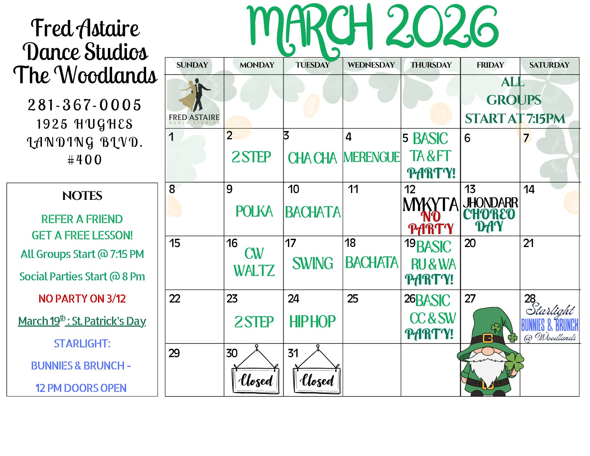 Don’t miss out on any of our events! Bookmark this page and check back regularly for updates on class schedules, special events, and any last-minute changes. You can also follow us on social media to get the latest news and join our vibrant dance community.