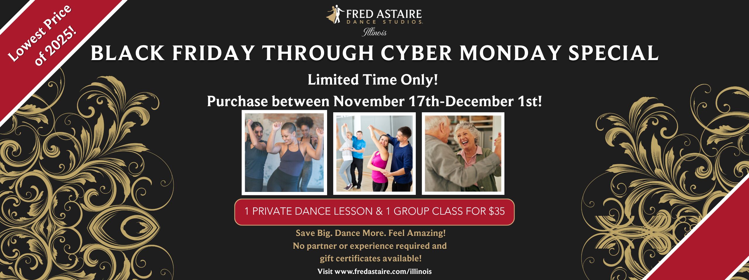 Whether you’re brand new to the ballroom or looking to refresh your skills, this is the perfect time to dance at one of our many Fred Astaire Dance Studios of Illinois locations. Give the gift of dance or treat yourself to something fun, active, and unforgettable!