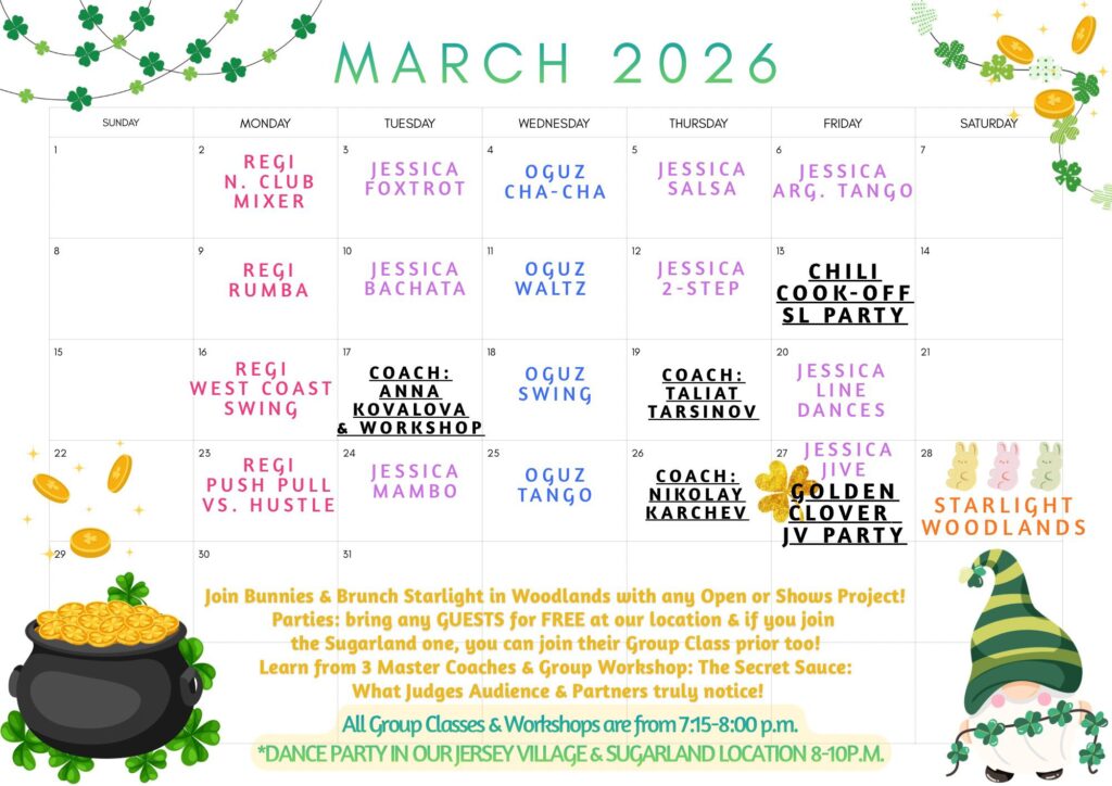 Below you will find our monthly calendar of events for Fred Astaire Dance Studio Jersey Village,