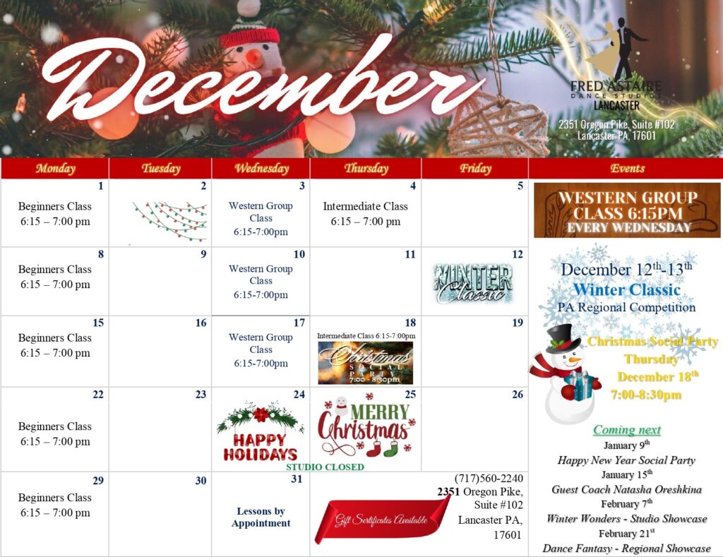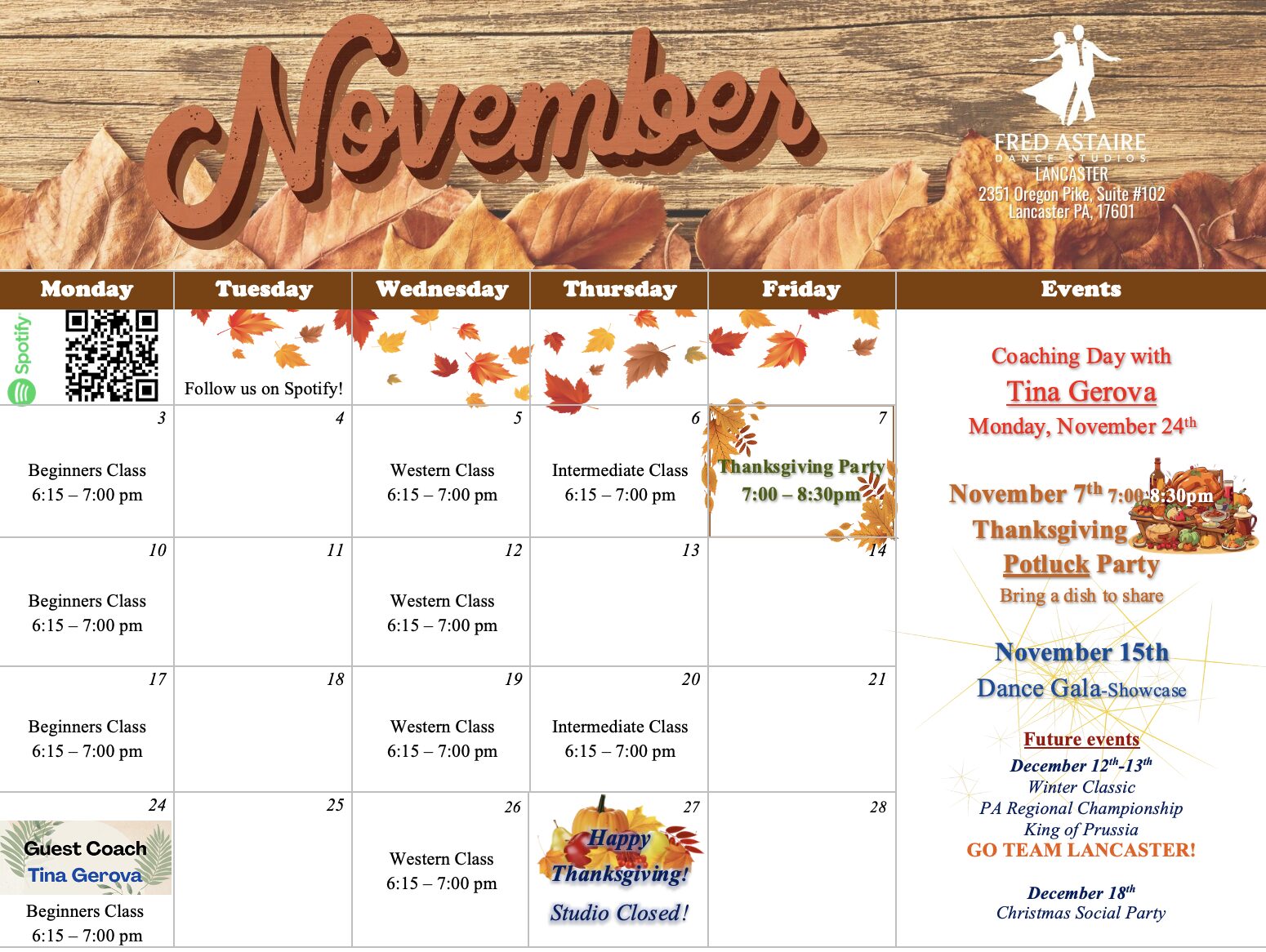 Check out this month’s calendar for the group class and practice party schedule and upcoming events at our Lancaster, PA dance studio!