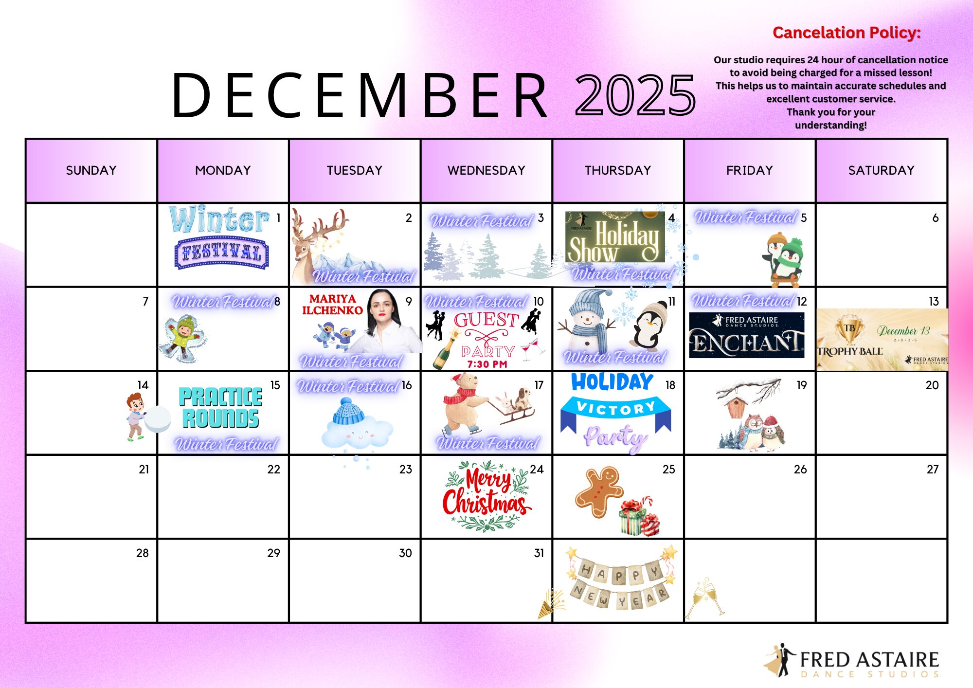 Check out this month’s schedule of Group Classes, Practice Parties and Special Events at our Studio. Come with a dance partner or by yourself. For more information and to join us, just give us a call!