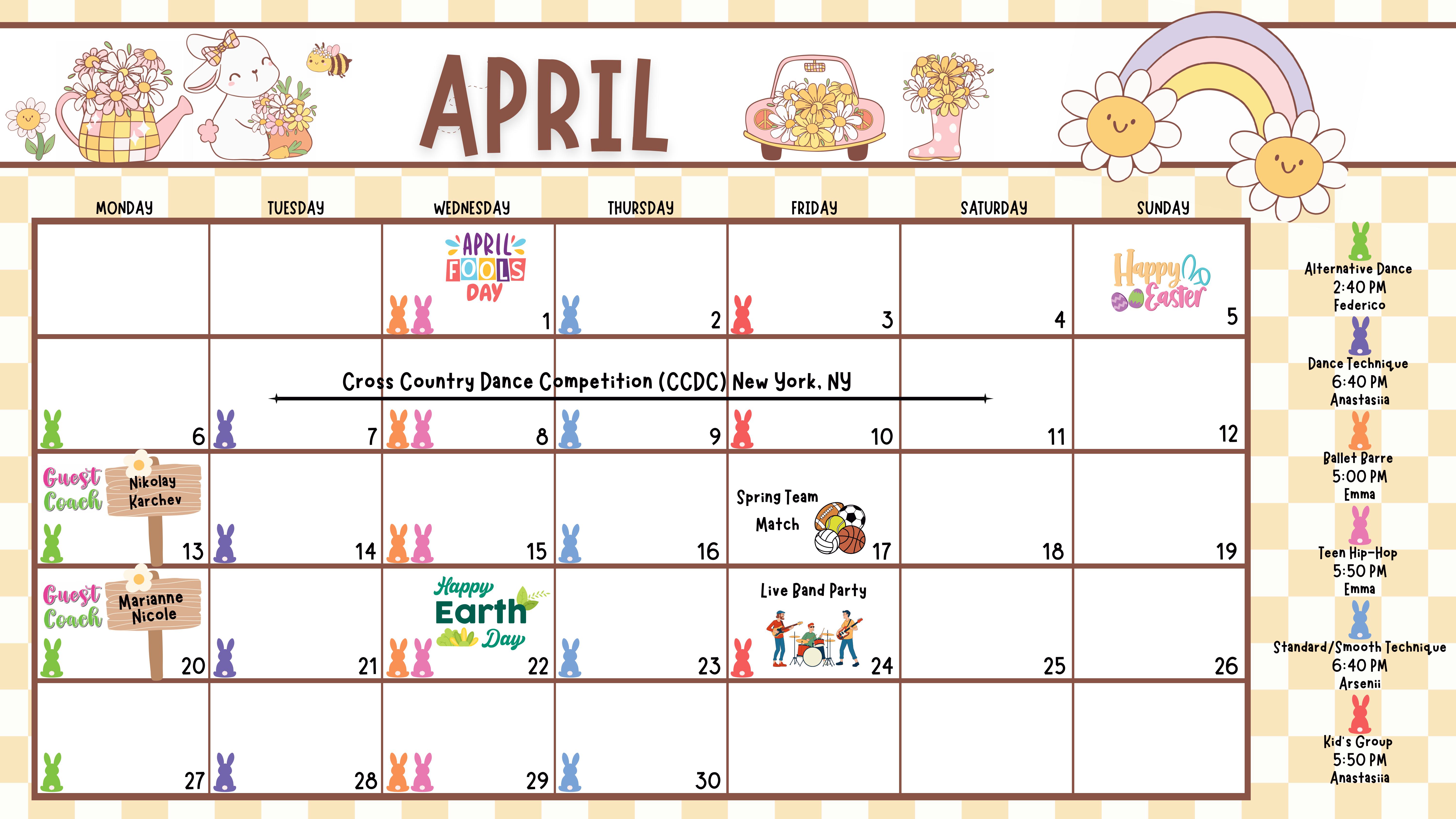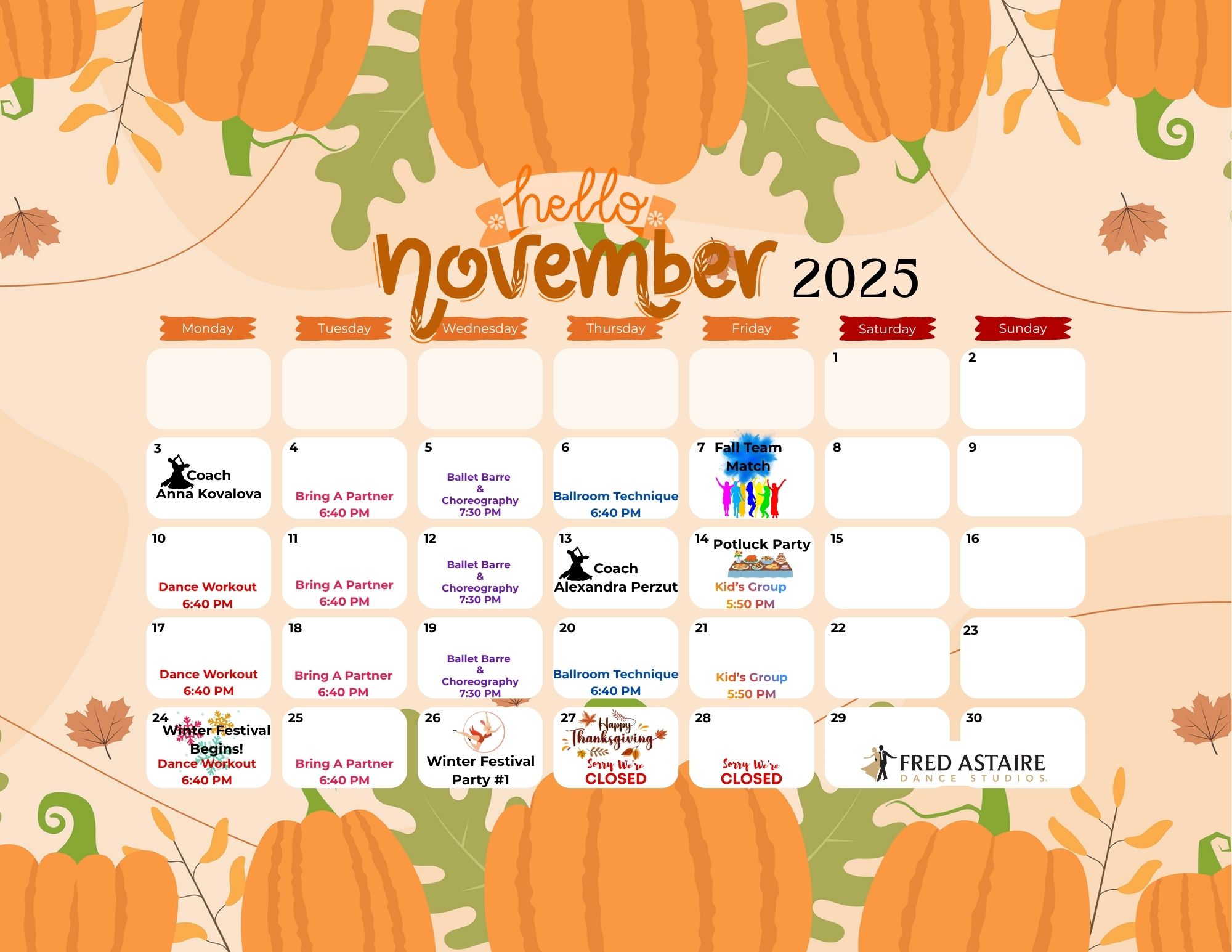 PLEASE NOTE: Our calendar of events is subject to change. Be sure to contact our studio with questions and for more information.