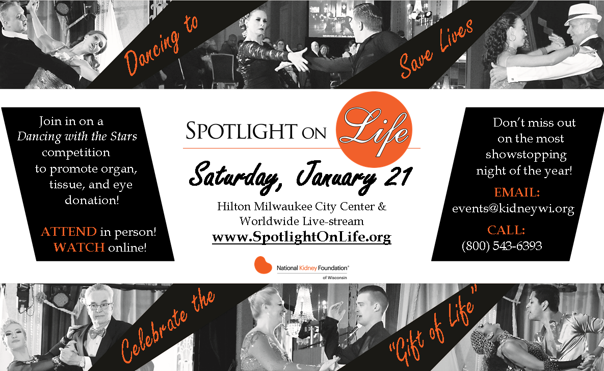 For more information please visit the Spotlight on Life website at http://www.kidneywi.org/programs-and-events/spotlight-on-life. Or you can call 1-800-543-6393 or email [email protected].