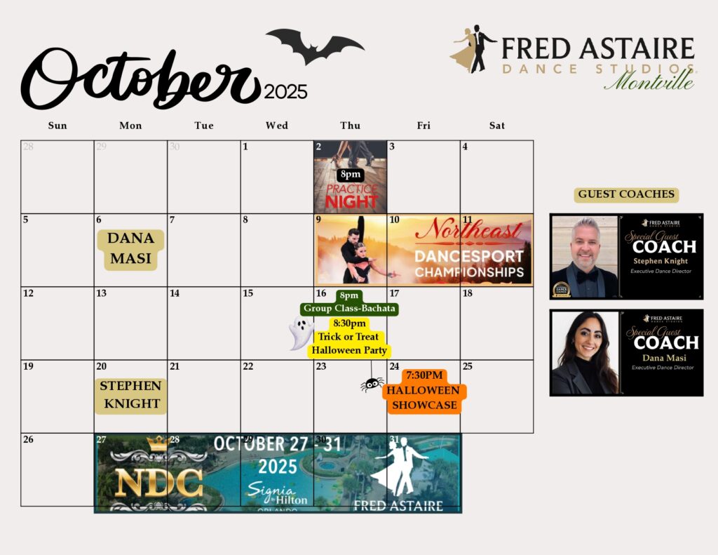 Check out this month’s schedule of Group Classes, Practice Parties and Special Events at our Studio. Come with a dance partner or by yourself. For more information and to join us, just give us a call!