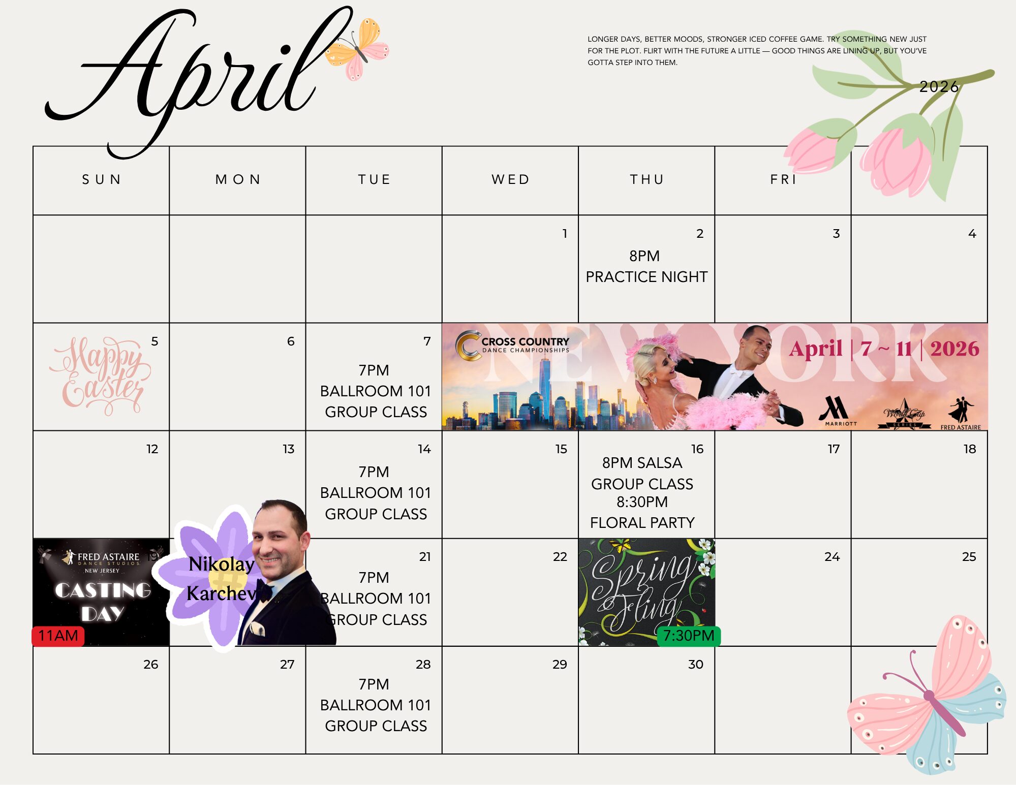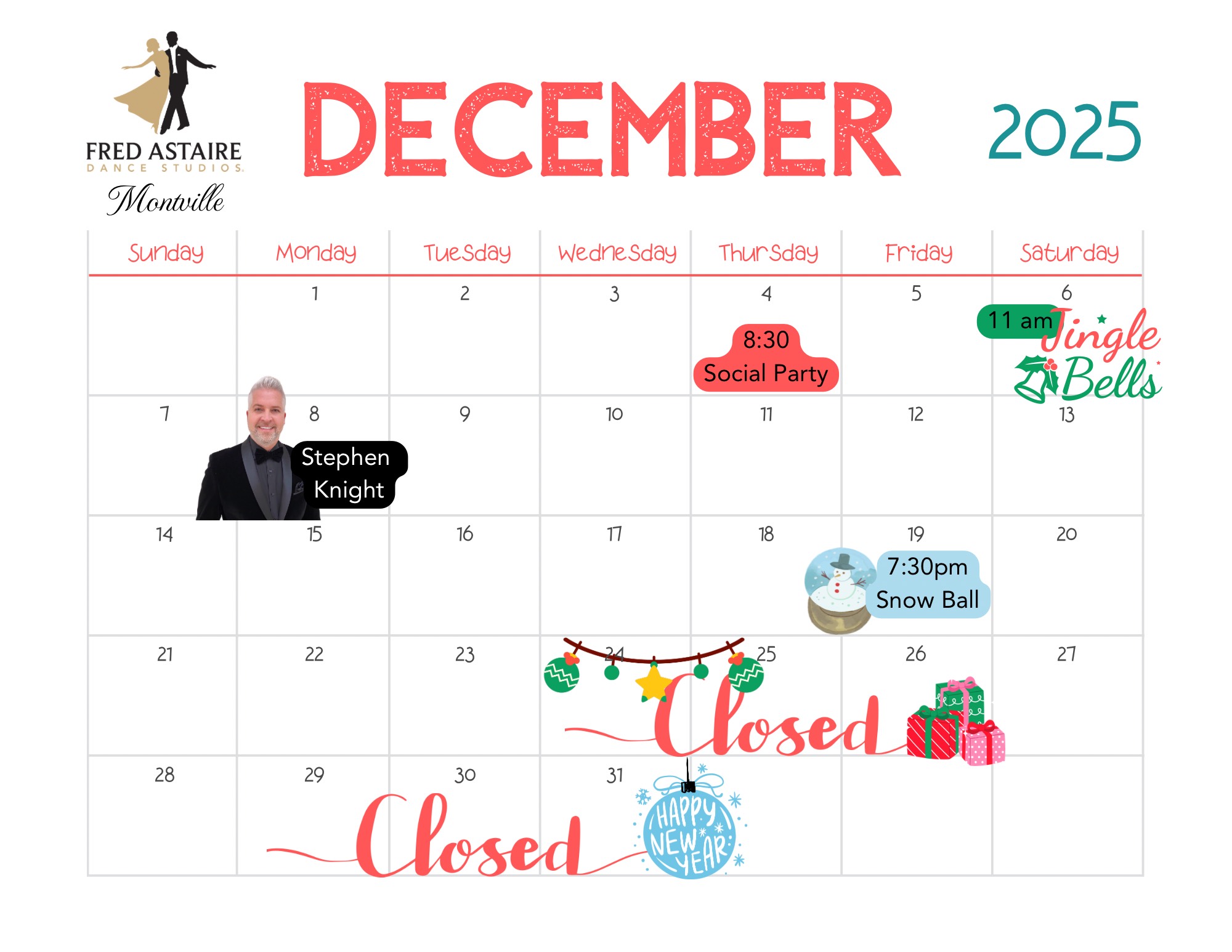 PLEASE NOTE: Our calendar of events is subject to change. Be sure to contact our studio for questions and more information.