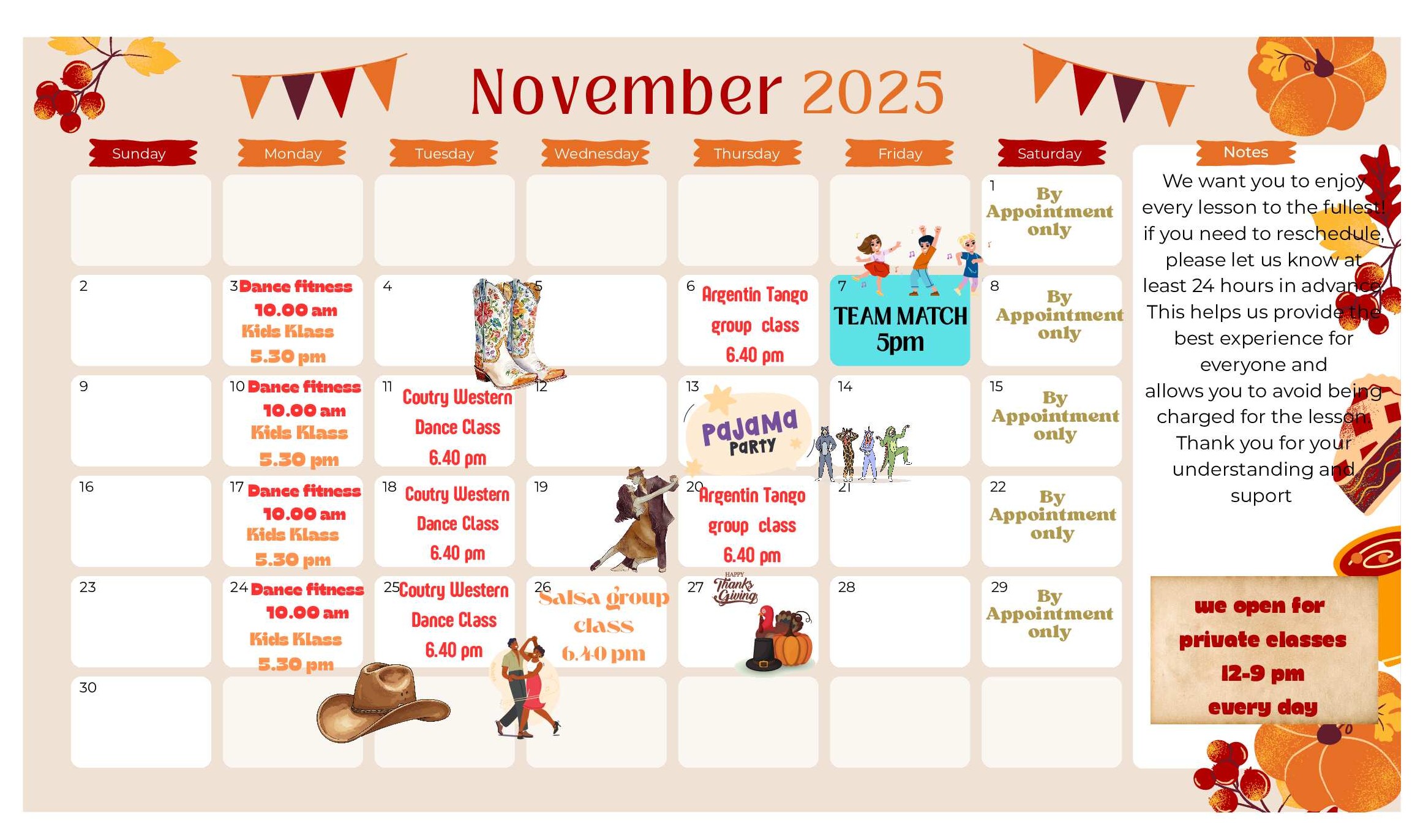 PLEASE NOTE: Our calendar of events is subject to change. Be sure to contact our studio with questions and for more information.