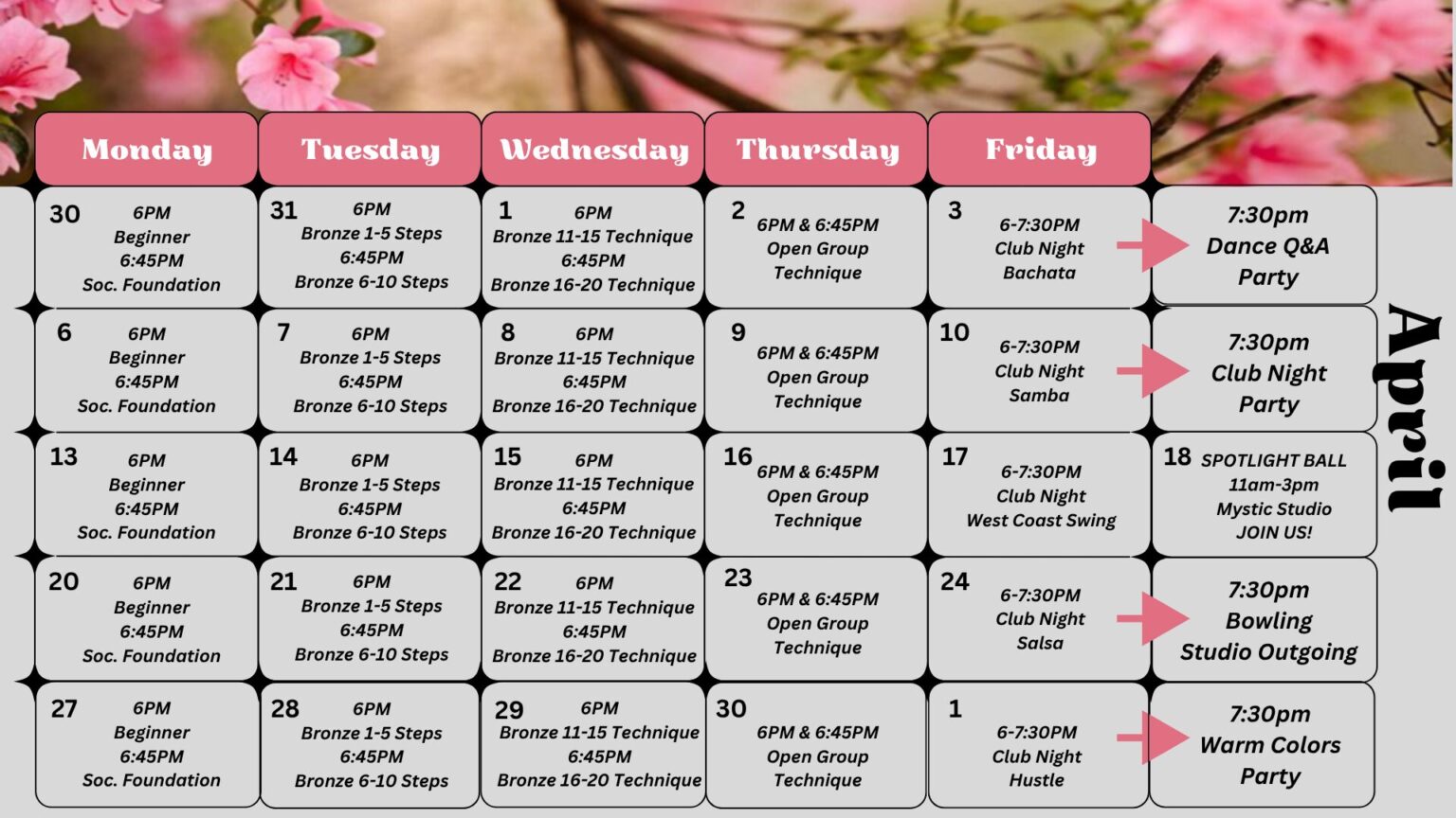 The fun never stops at Fred Astaire Dance Studio – Mystic! Join us for an exciting lineup of Group Classes, Practice Parties, and Special Events this month. Whether you’re a beginner or a seasoned dancer, our vibrant community and professional instructors will keep you moving, learning, and having a great time. Check out our monthly schedule and get ready to dance, connect, and make unforgettable memories!