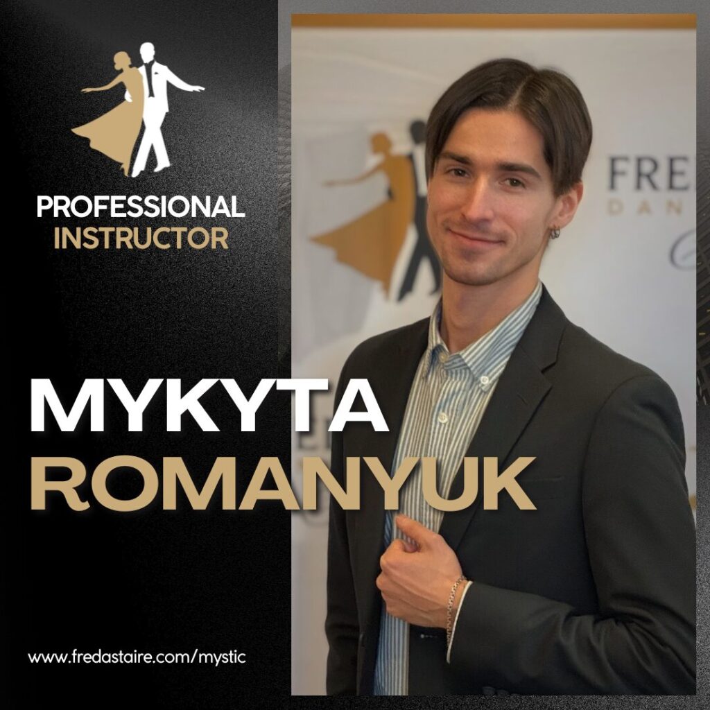 Mykyta was born in Kharkiv, Ukraine, and began his dance journey in Warsaw, Poland, where he joined one of the most prestigious Polish dance studios. Starting as a student, he quickly fell in love with dancing and pursued instructor training. He has since honed his skills in various dance styles, including American smooth, American rhythm, and social dances such as Salsa, Bachata, Zouk, Argentine tango, West Coast swing, and Lindy Hop.