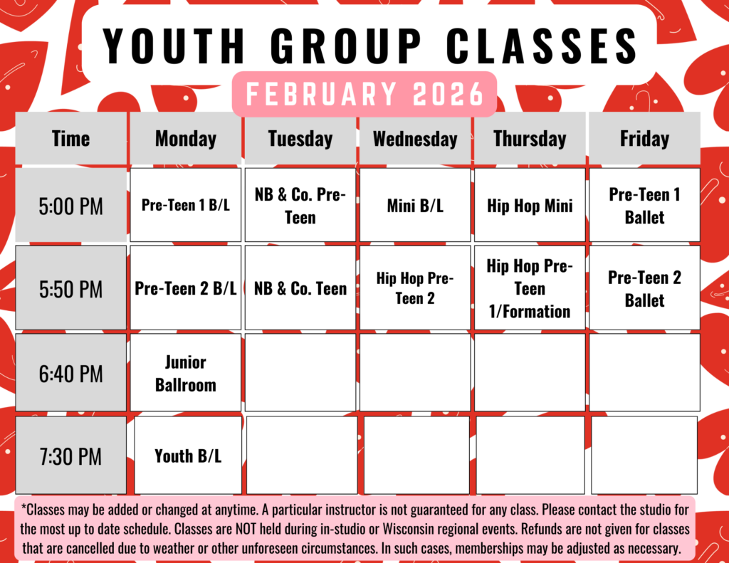 Don’t forget!Classes & private lessons at our New Berlin Studio location are also a great way for your children to develop lasting friendships and social etiquette that will serve them on the dance floor and beyond.