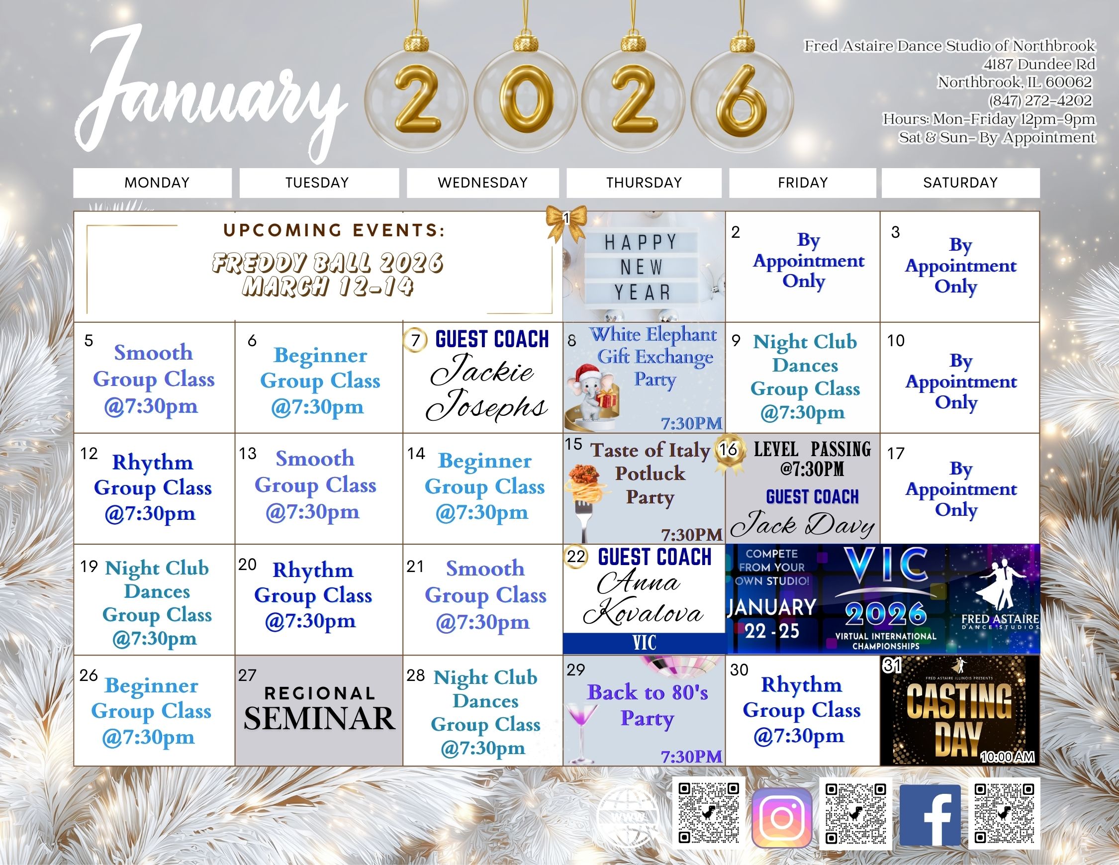 Join the Northbrook Studio students and professionals for an evening of social dancing! These weekly themed dance parties will have you filling your Thursday or Friday evenings with movement, your love of dance, and the opportunity to stay connected to your dance family and make new friends.