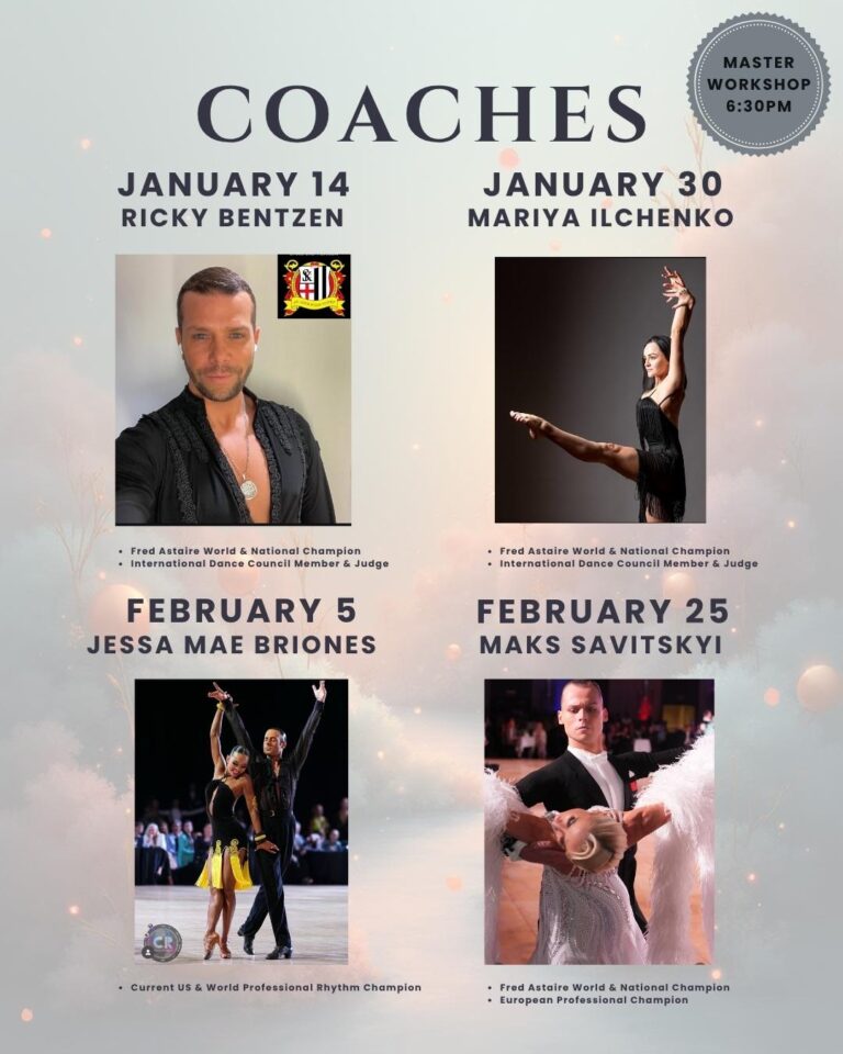 Time to put those moves to work—no pressure, just fun! Our practice parties are the perfect place to dance in a relaxed, social setting. You'll get to try out what you’ve learned, mix and mingle with fellow dancers, and build confidence on the floor. Great music, good vibes, and maybe even a little sparkle—because practice should always feel like a party!