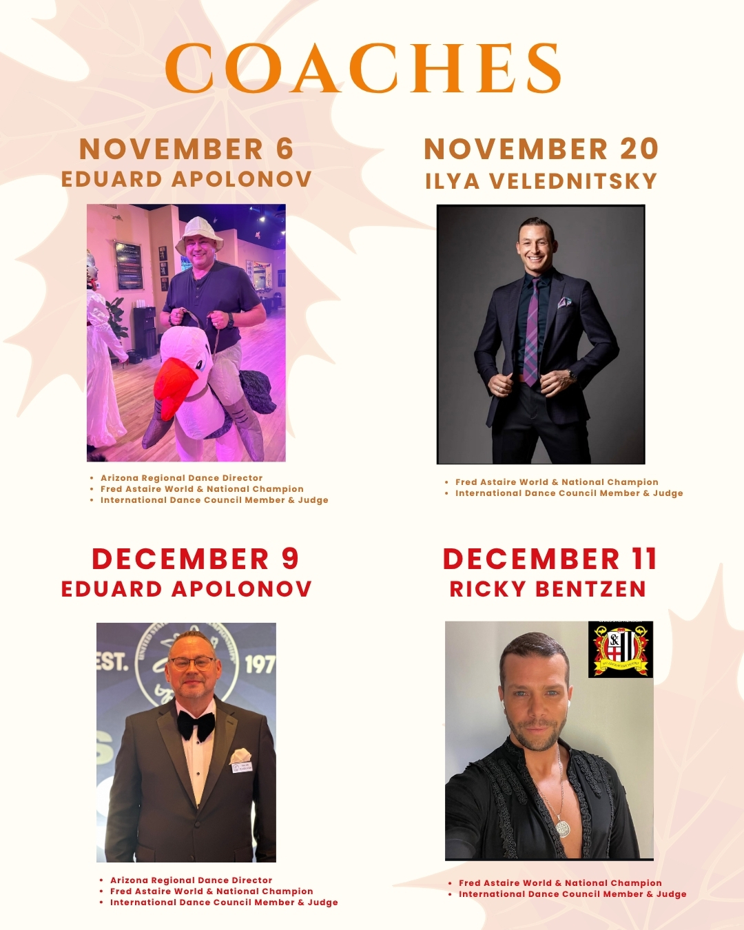 Get ready to move, laugh, and groove with new friends! Our group classes are the perfect mix of learning and social vibes. Whether you're coming with a partner or flying solo, you'll dance alongside others in a fun, energetic setting where everyone’s learning together. No pressure, just great music, good vibes, and tons of steps (and laughs) along the way!