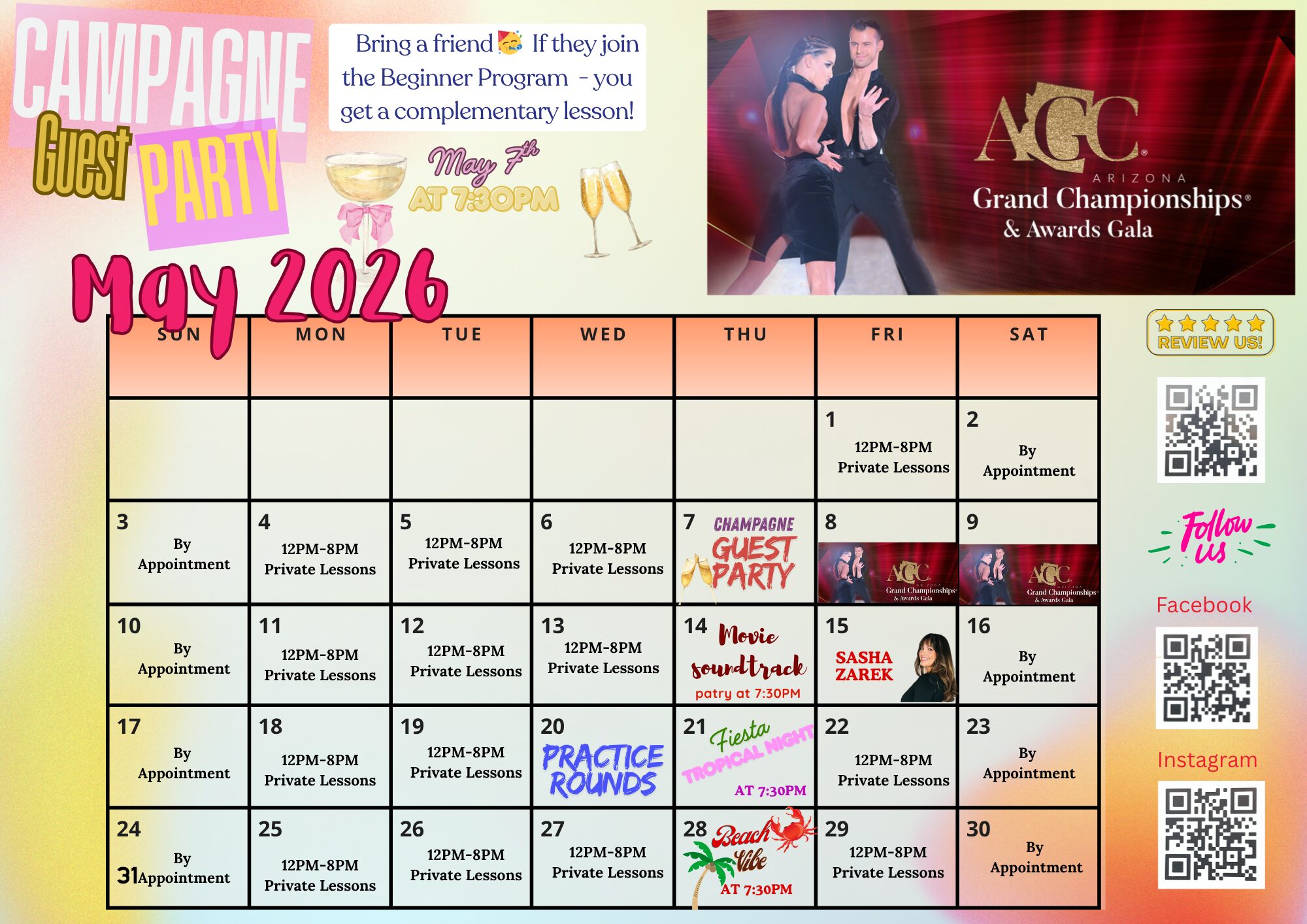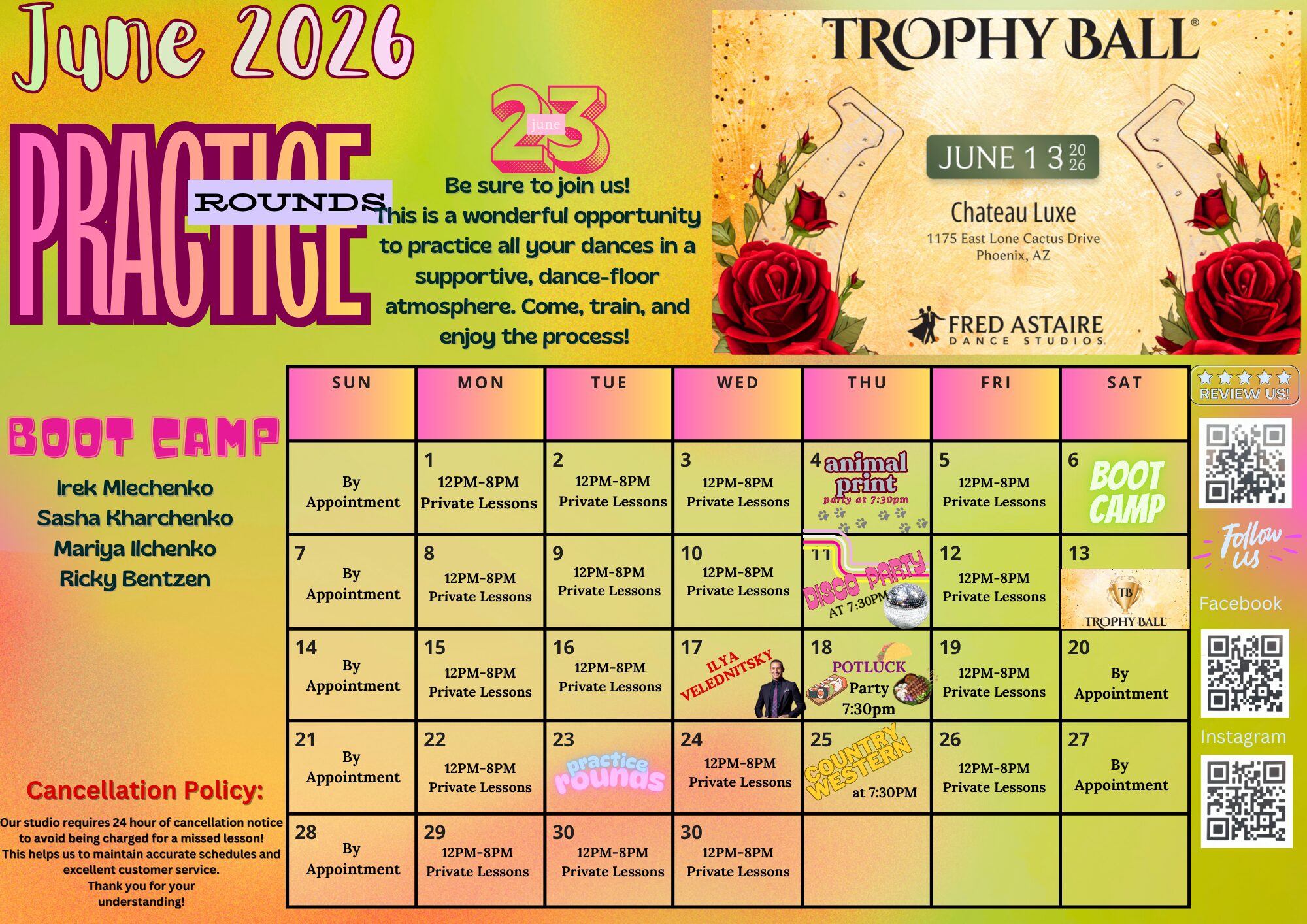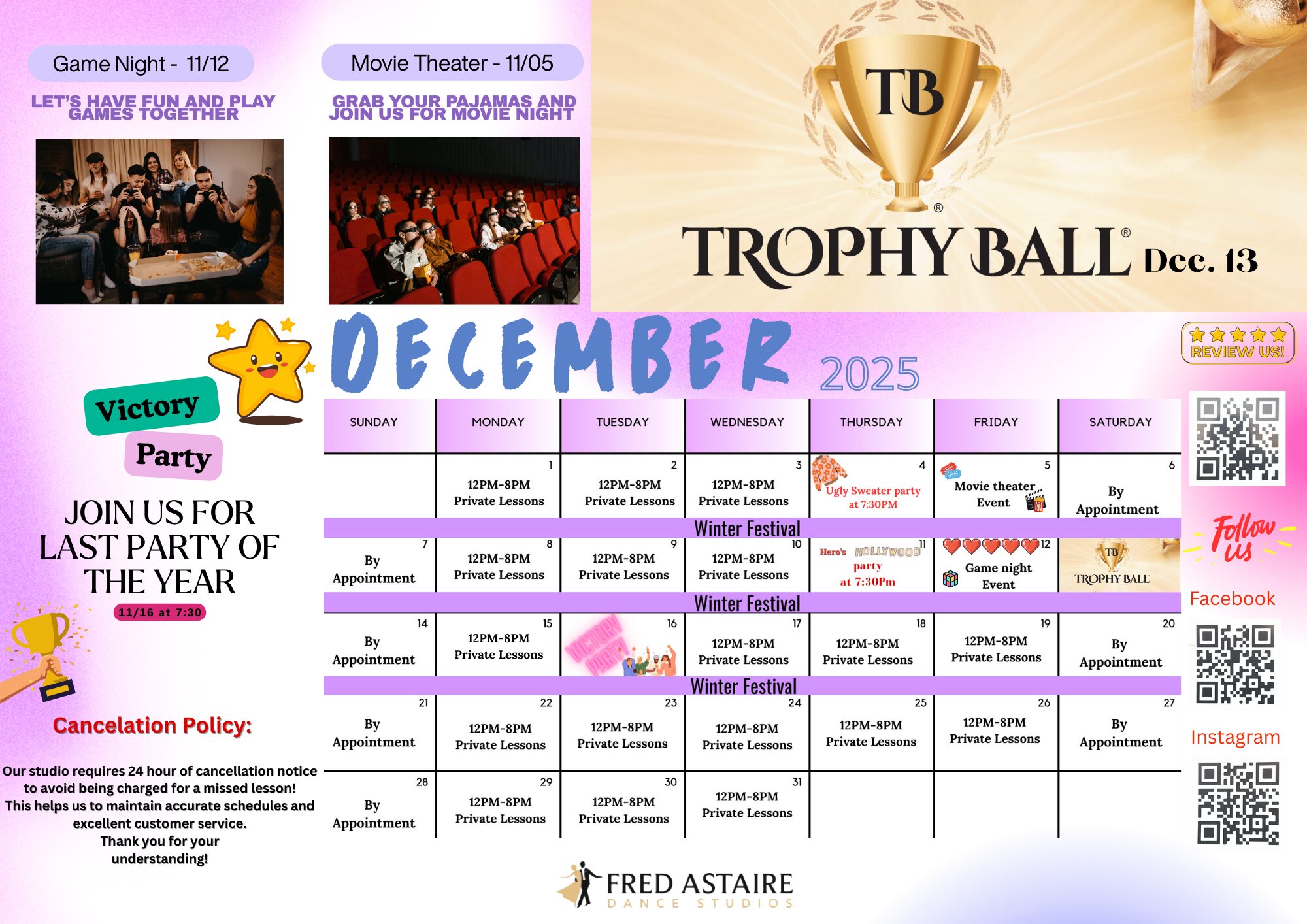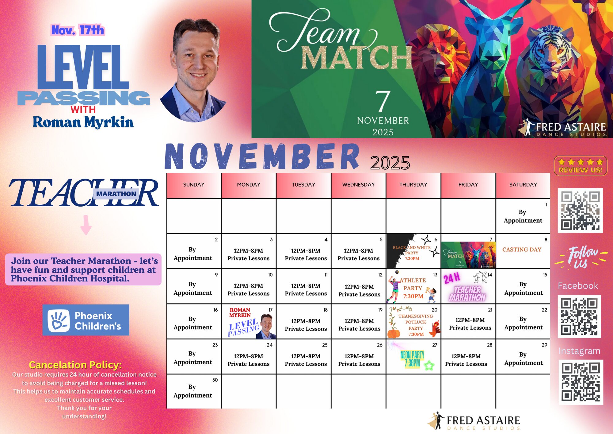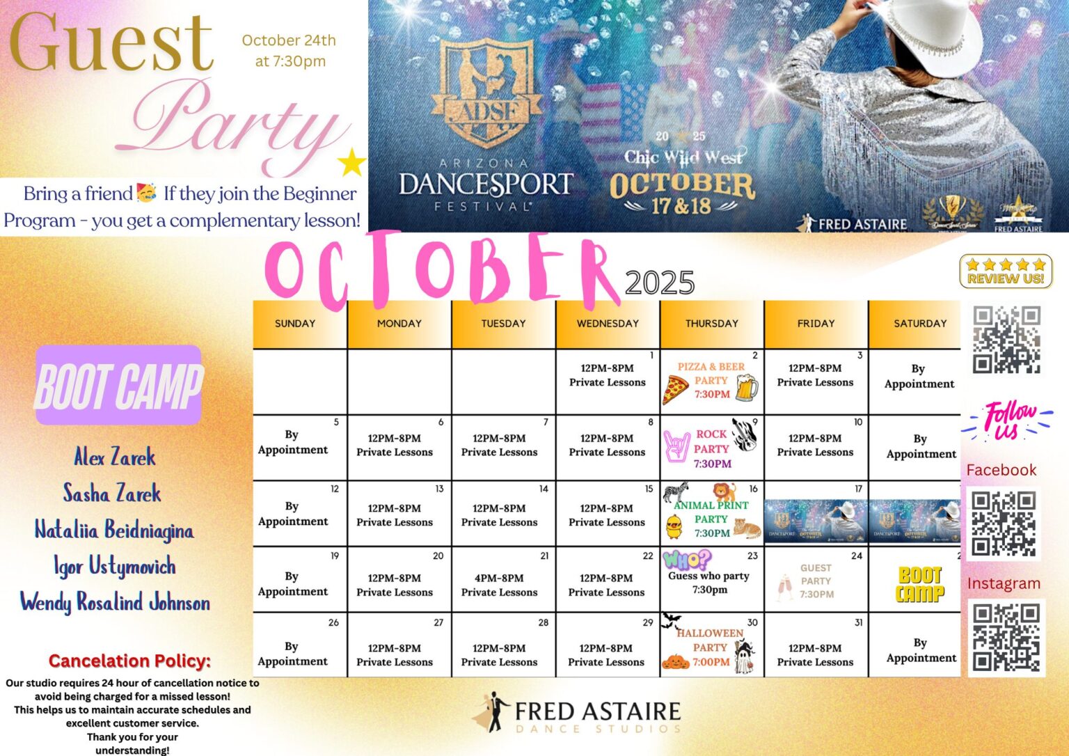 Below you will find our monthly calendar of events for Fred Astaire Dance Studio of Old Town Scottsdale, including group classes, practice parties, and special events!
