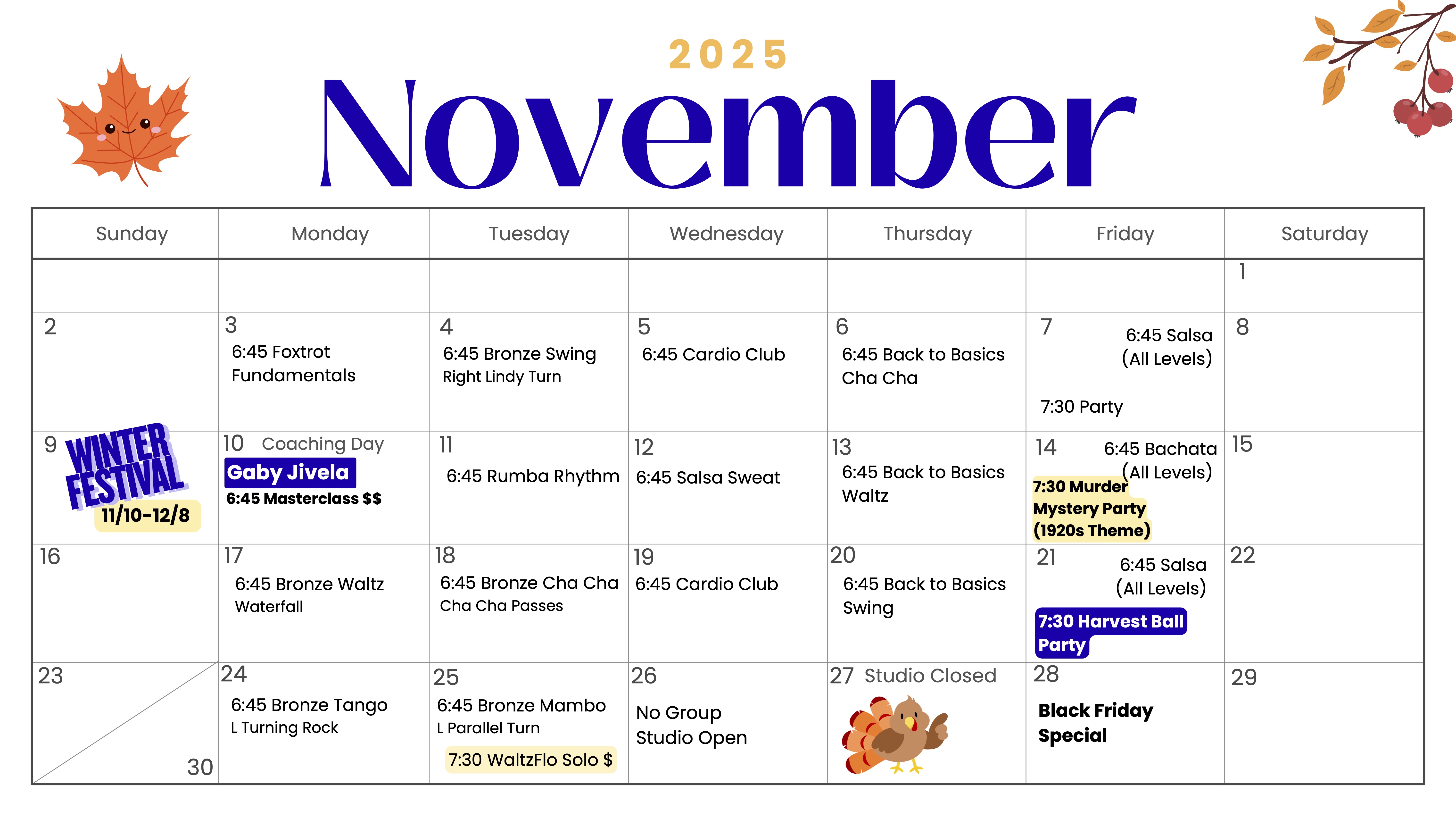 PLEASE NOTE: Our calendar of events is subject to change. Be sure to contact our studio for questions and more information.
