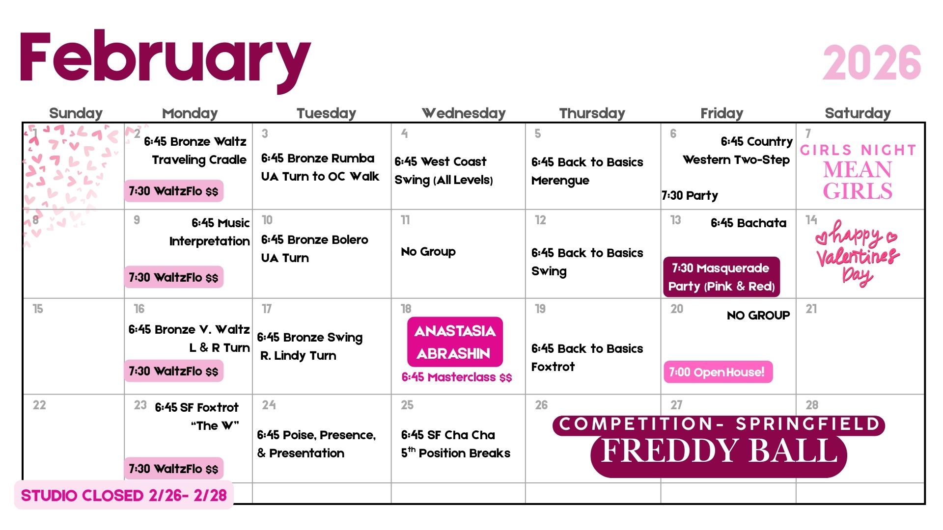 Our calendar is a great place to begin. If you’re looking for a fun hobby with a social life to match, Fred Astaire Dance Studios of Orange, CT is the premier studio in Connecticut! Please click on the image to make it more visible!