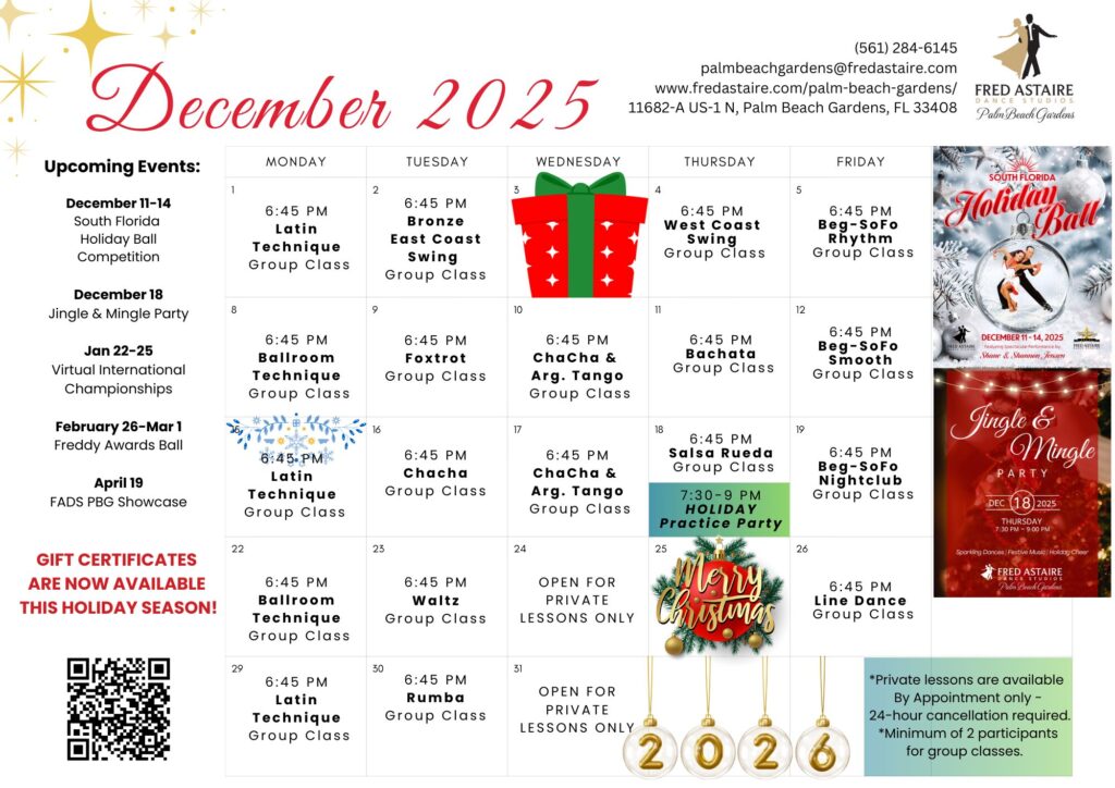 Check out this month’s schedule of Group classes, Practice Parties, and Special Events at our Studio! Come with a dance partner or by yourself. For more information and to join us, give us a call at (561) 284-6145 or send us an email at [email protected]!