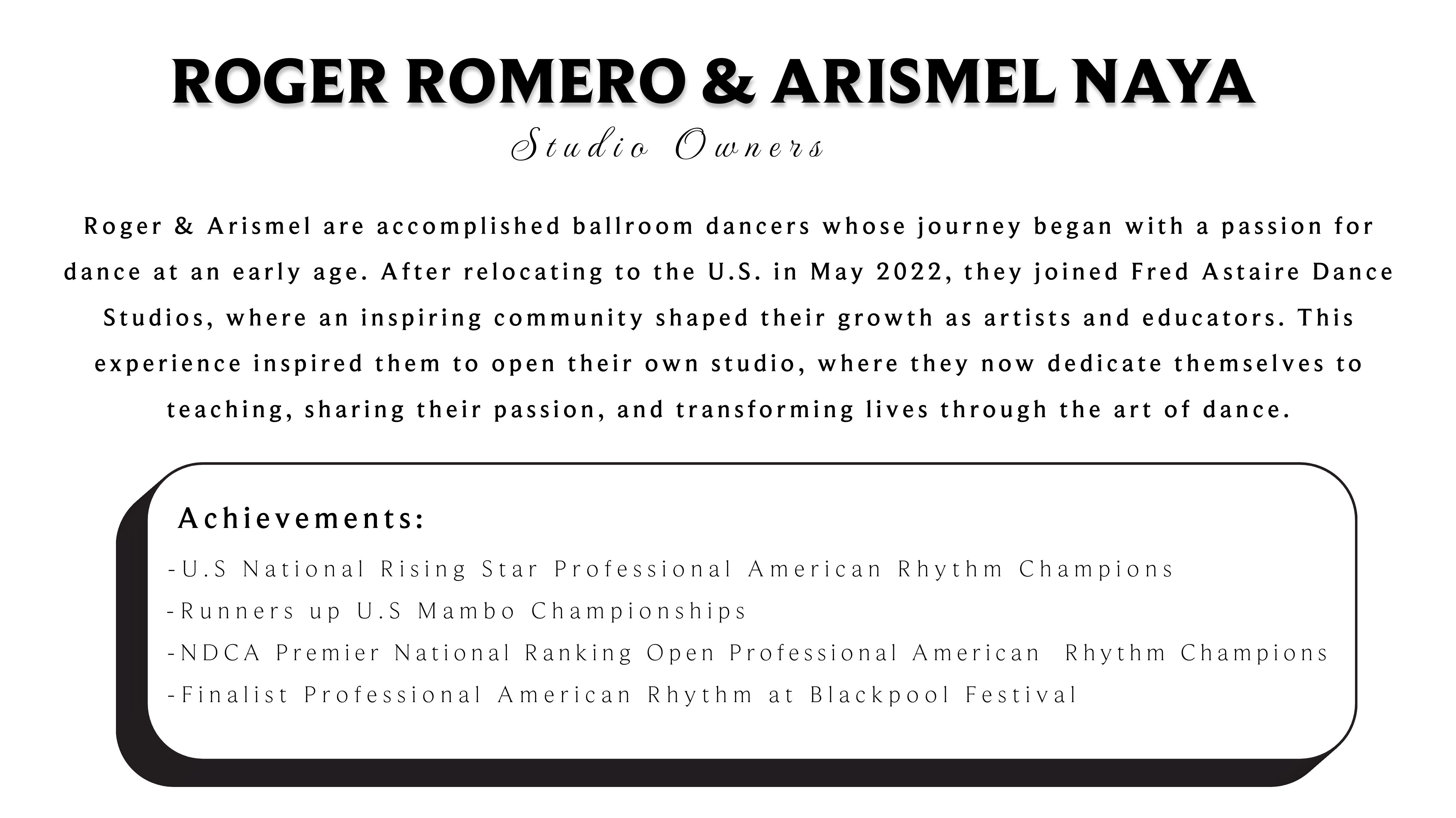 Since 1947, our passion is helping to enrich lives – physically, mentally, emotionally and socially – through the positive, transforming power of dance. There are thousands of reasons why people start dance lessons… and once we show you how much fun ballroom dancing can be, we know you’ll want to keep coming back. From wedding dance instruction, a new hobby or way to connect with your partner, physical and emotional health, improving your social life…
