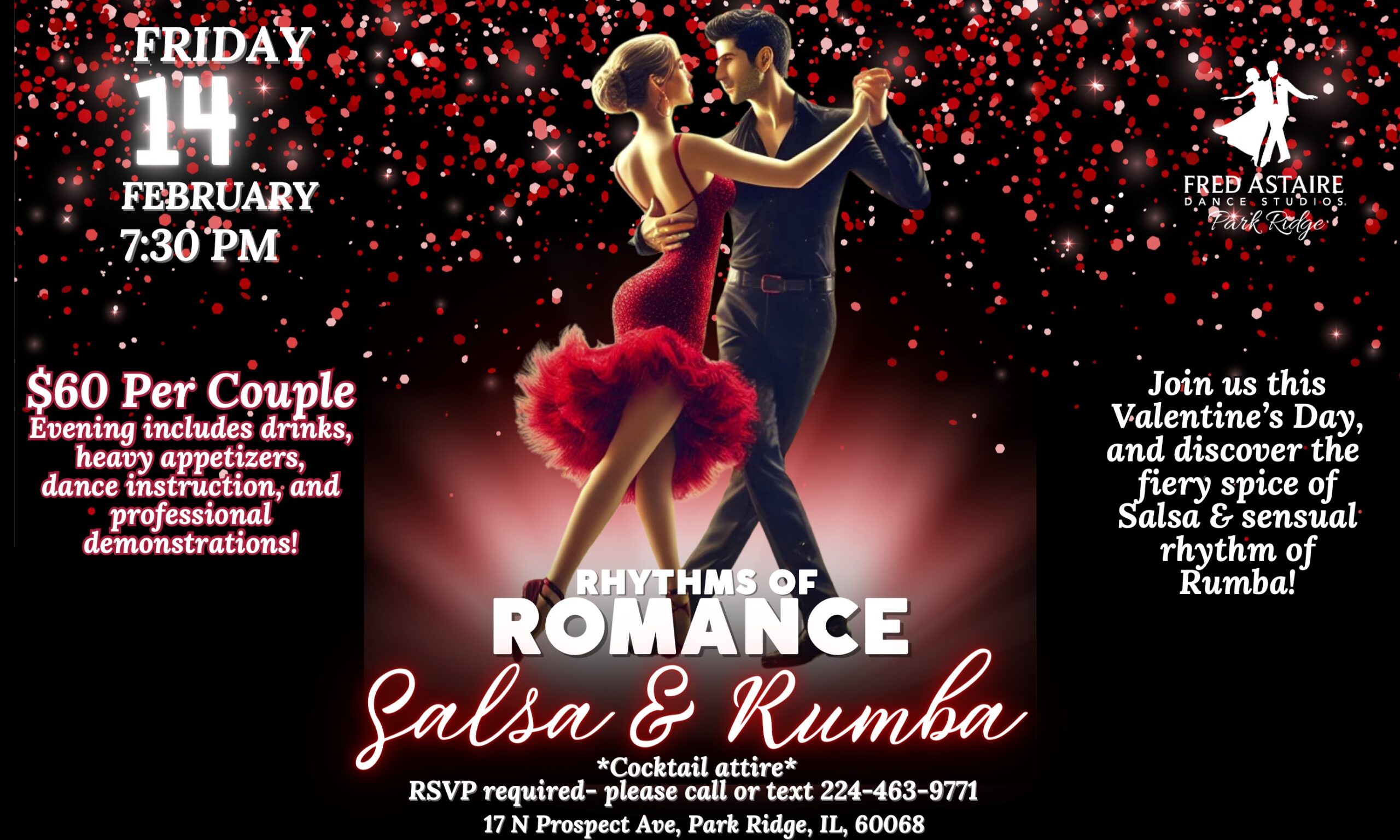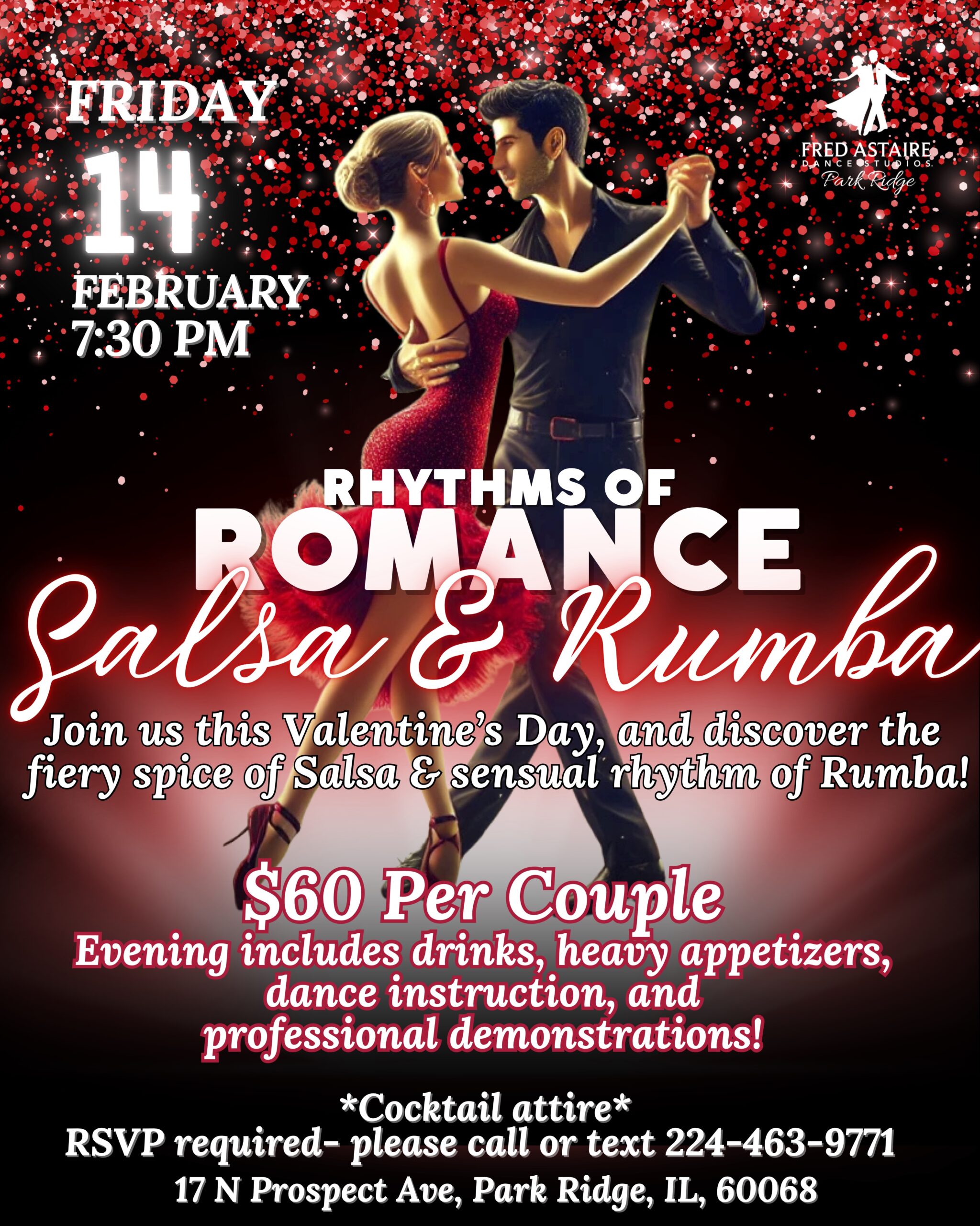 Evening includes drinks, heavy appetizers, dance instruction, and professional demonstrations!