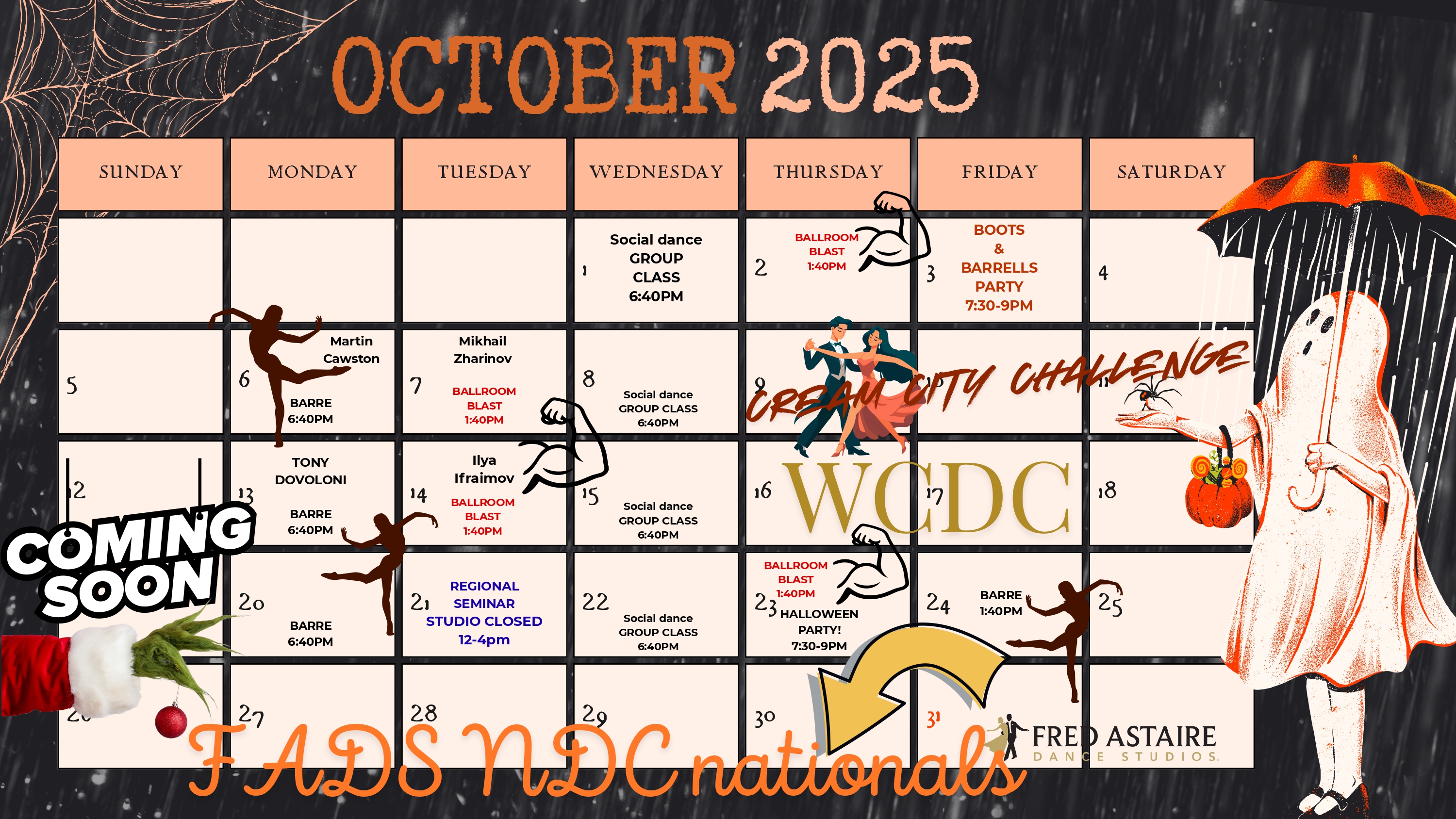 PLEASE NOTE: Our calendar of events is subject to change. Be sure to contact our studio with questions and for more information.