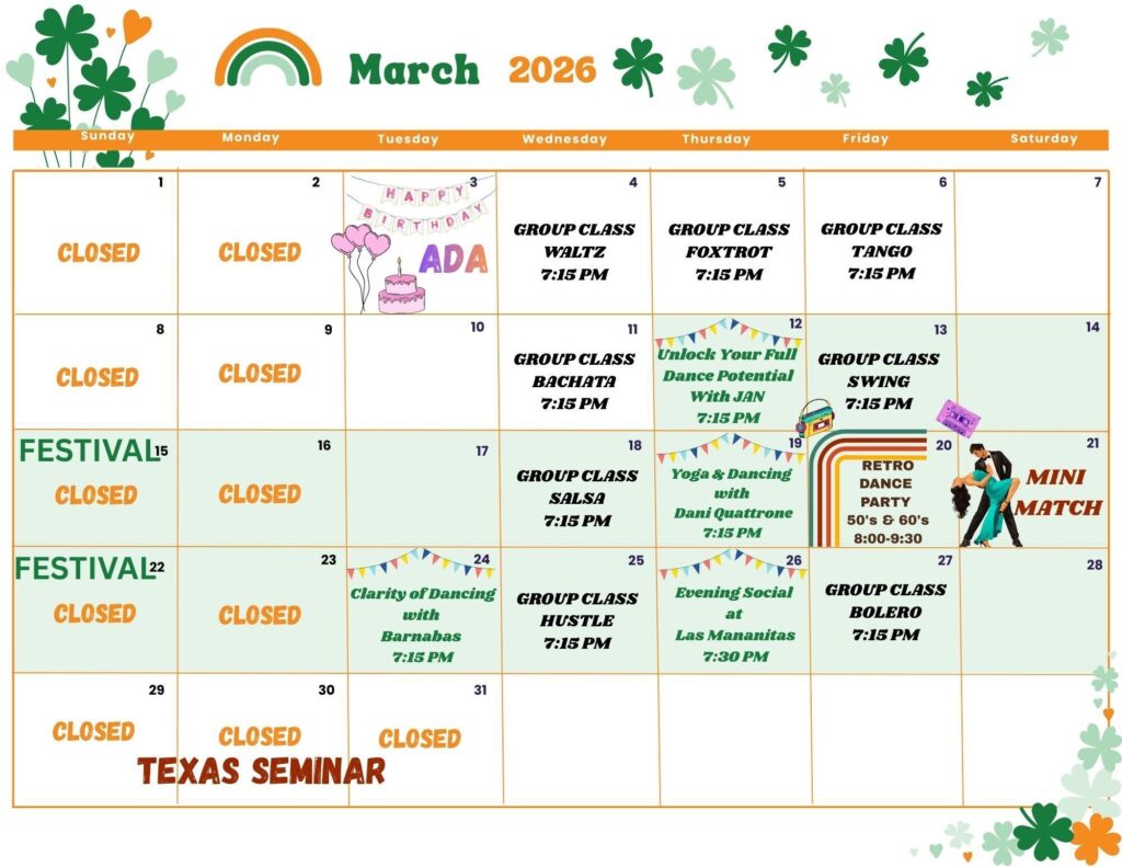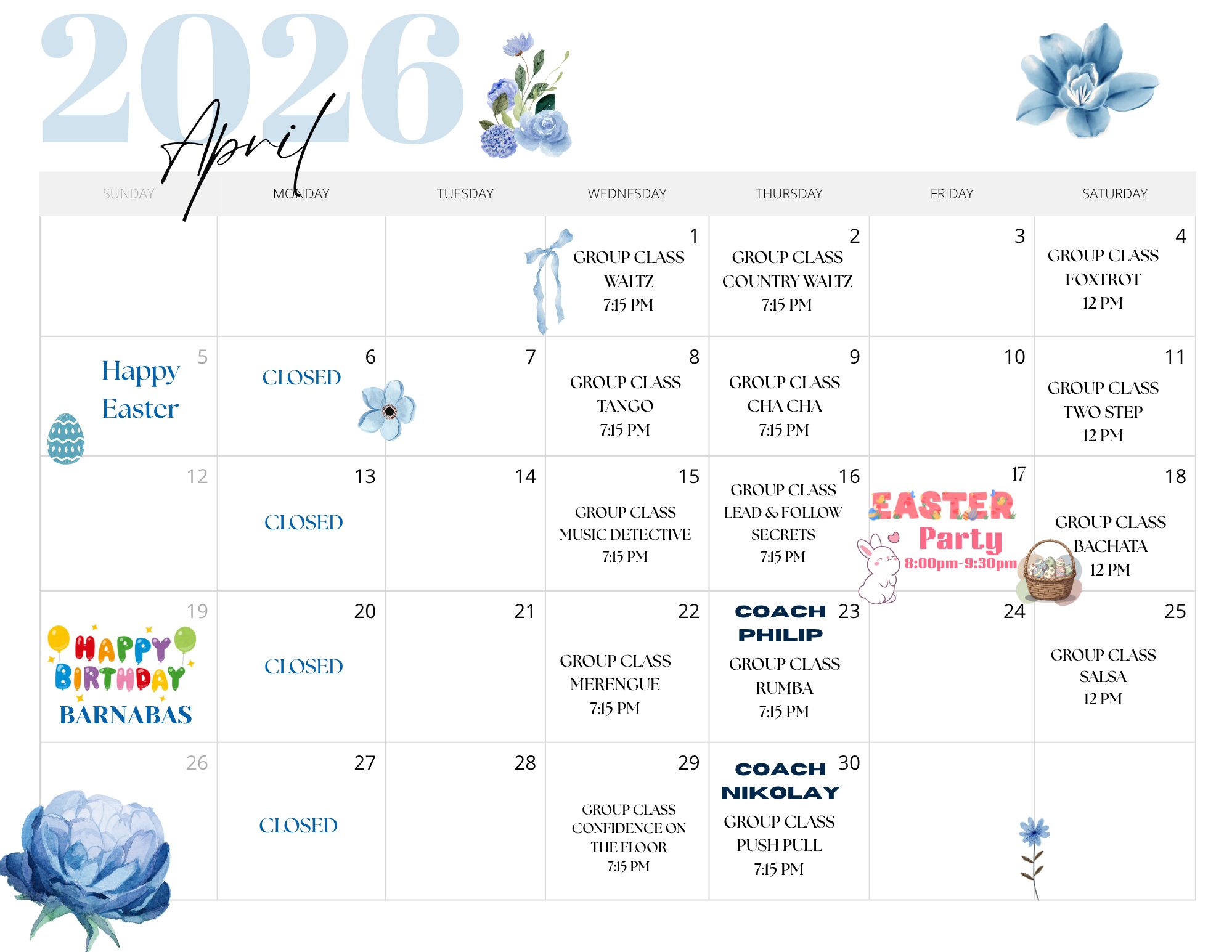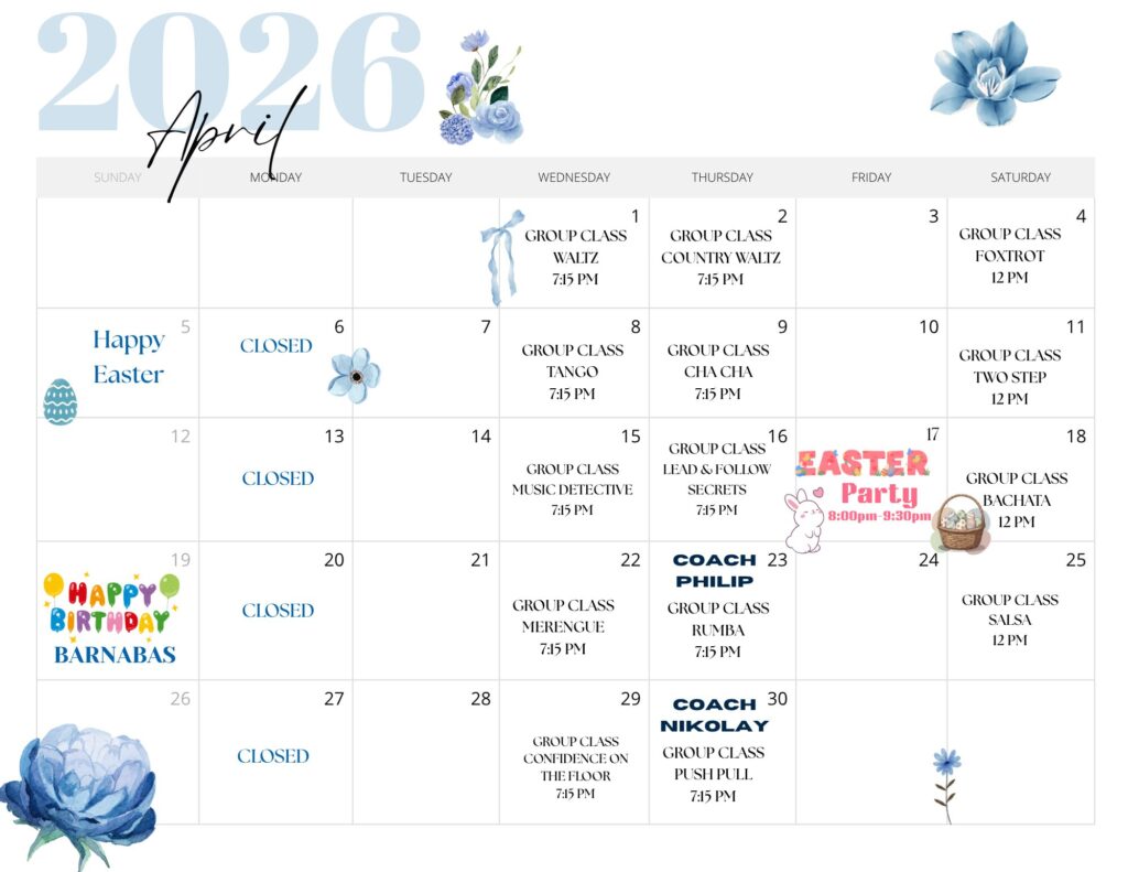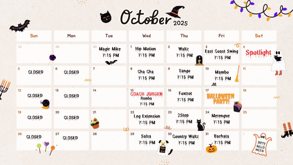 Don’t miss out on any of our events! Bookmark this page and check back regularly for updates on class schedules, special events, and any last-minute changes. You can also follow us on social media to get the latest news and join our vibrant dance community.