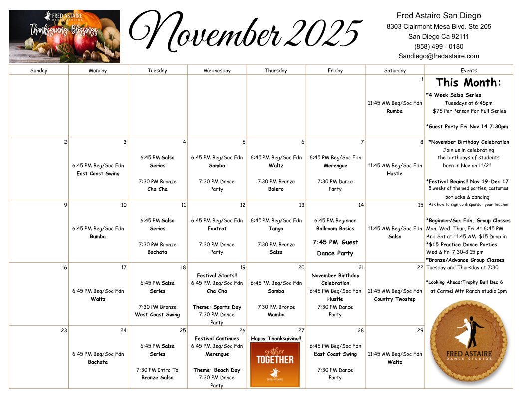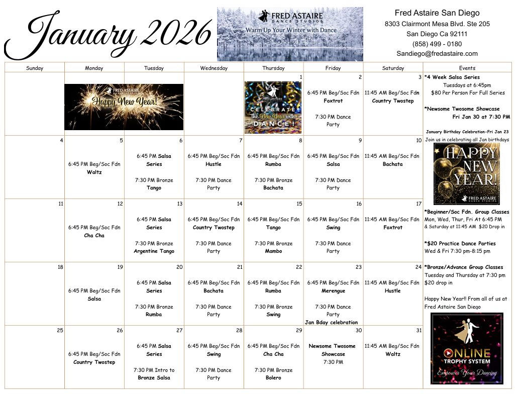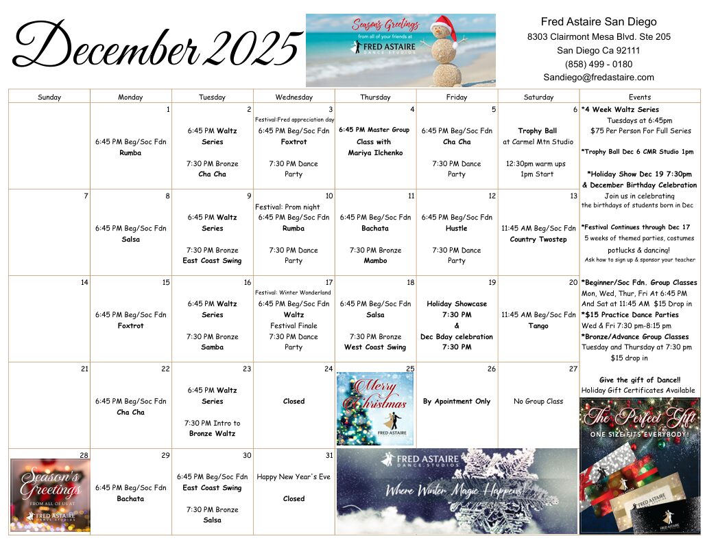 PLEASE NOTE: Our calendar of events is subject to change. Be sure to contact our studio for questions and more information.