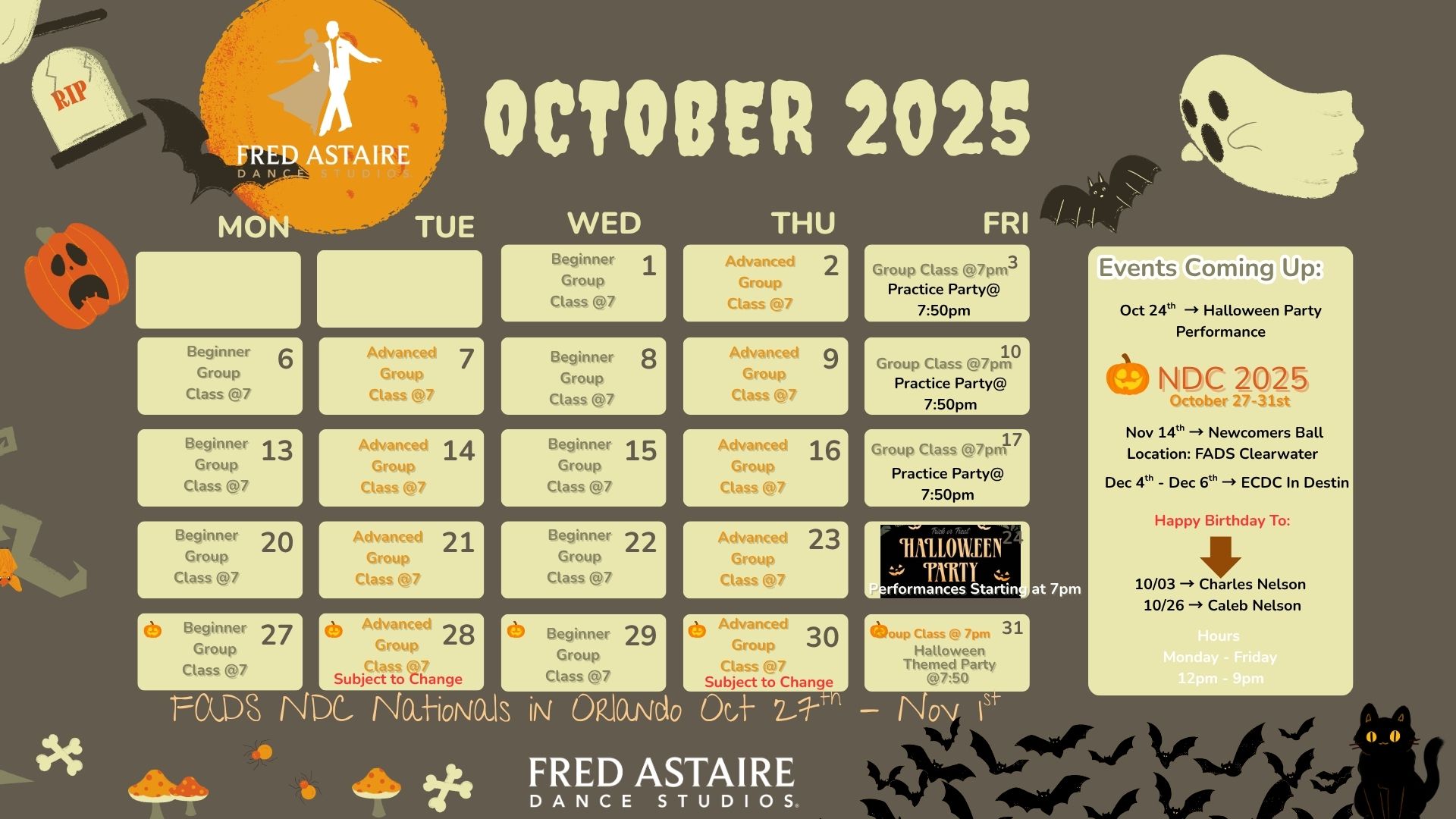 Our Tampa Dance Studio offers private and group dance lessons, studio practice parties, and much more! Check out this month’s calendar below and make sure to pick up a copy in the studio.